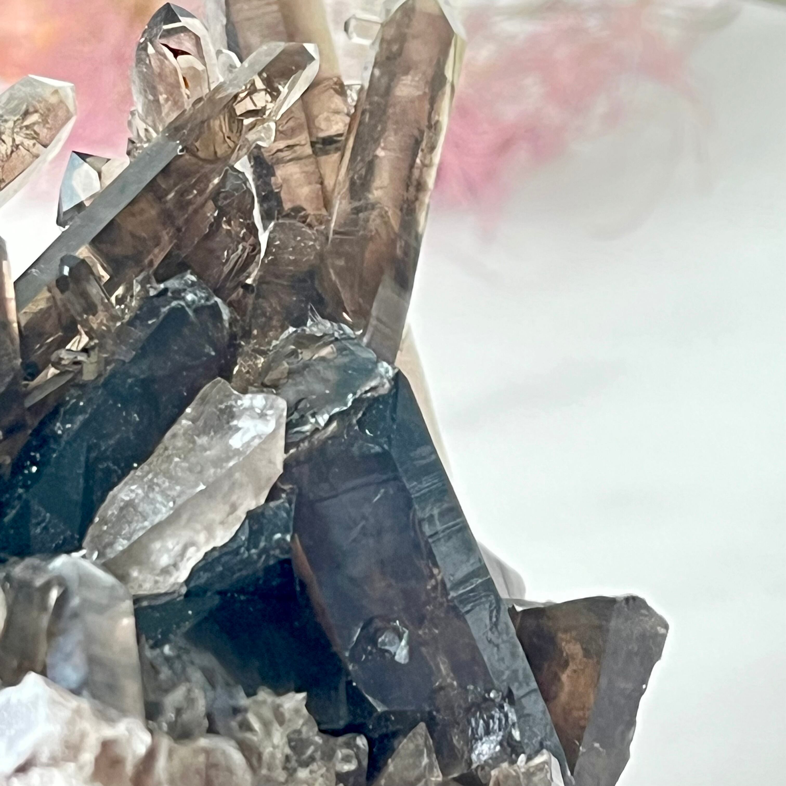 漆黒の部分と、透明〜スモーキーが混ざり合う表情豊かなマダガスカル産モリオン。