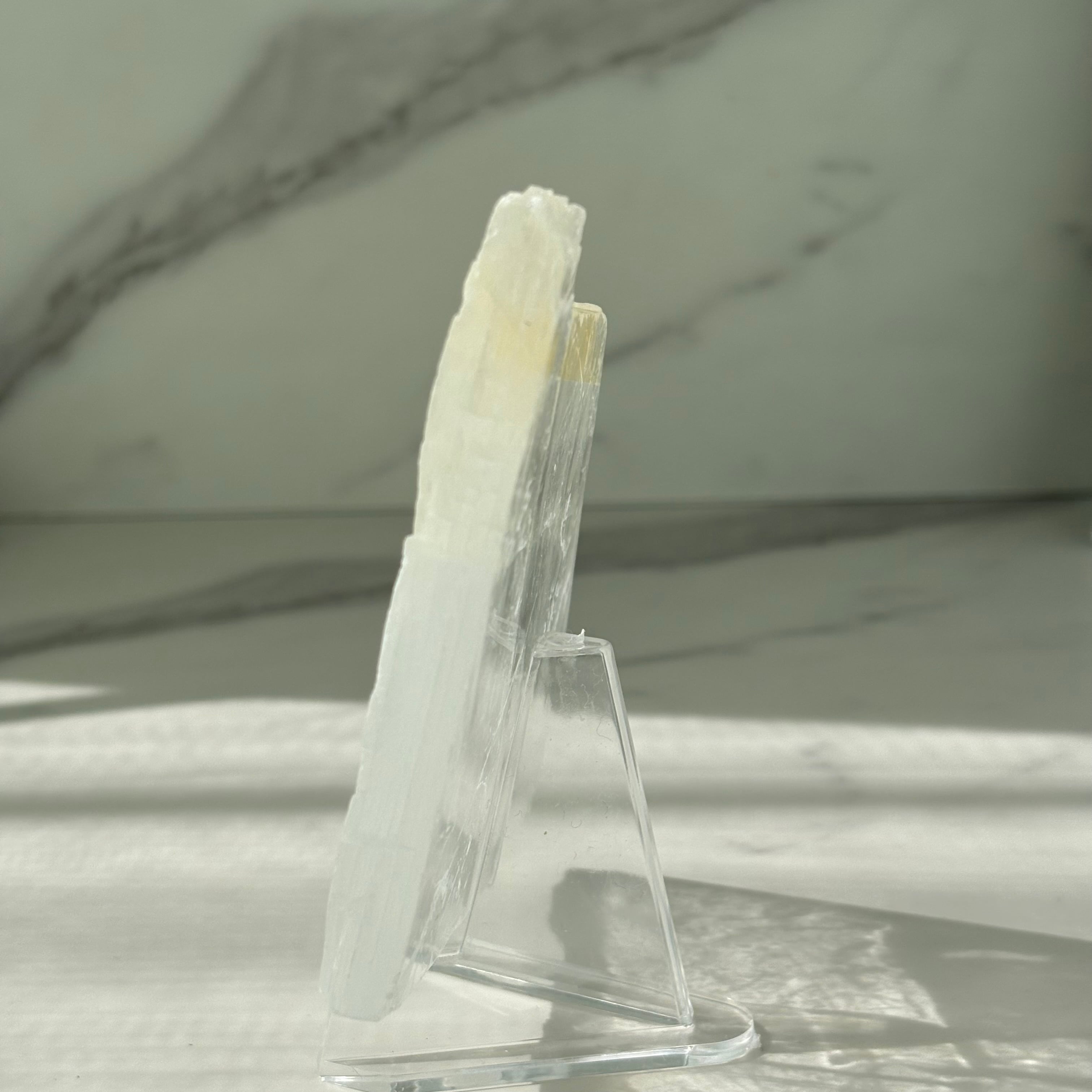 ※ セレナイトは硬度が低く、衝撃に弱いため、お取り扱いには十分お気を付けください。水に弱い石なので、流水による浄化はお控えください。