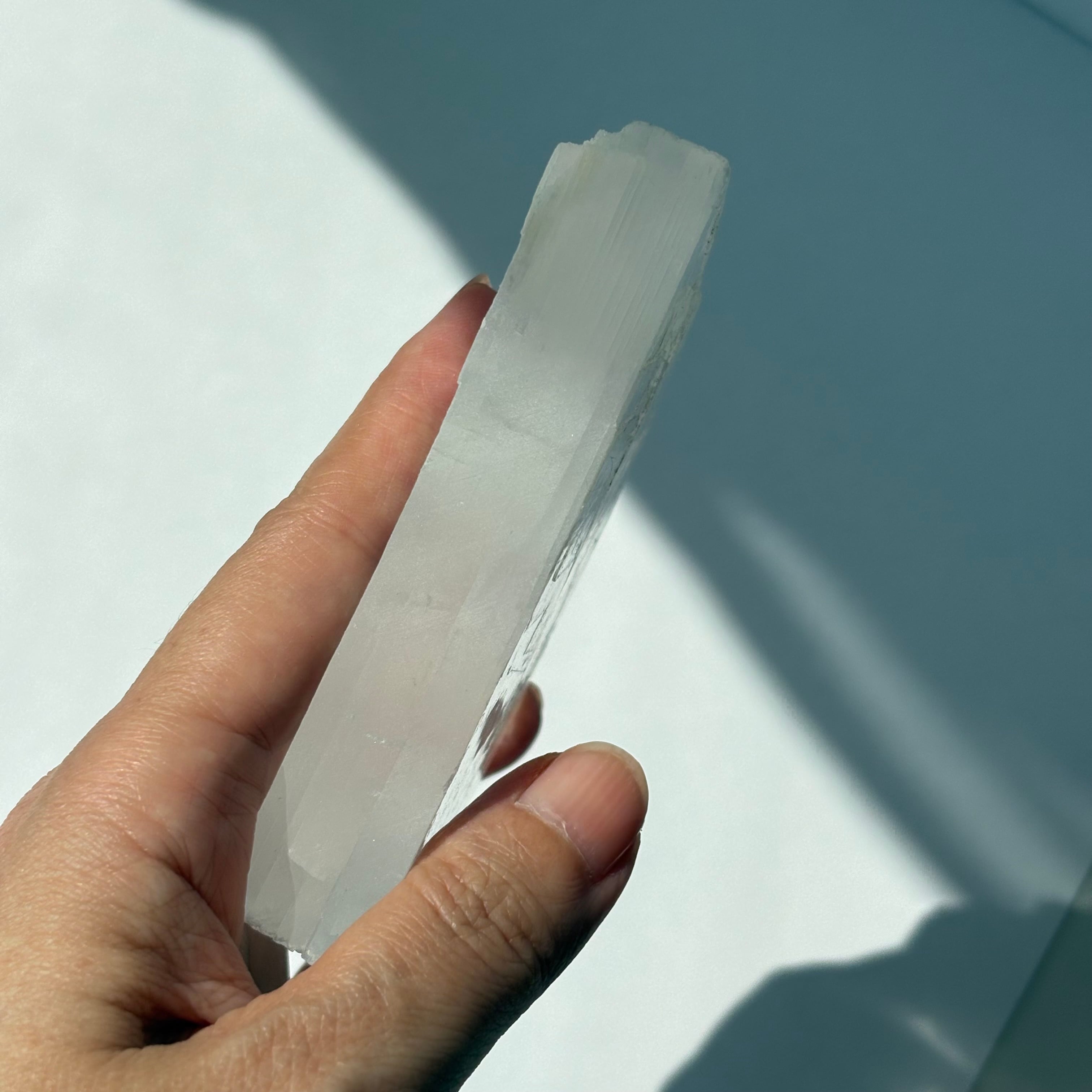 ※ セレナイトは硬度が低く、衝撃に弱いため、お取り扱いには十分お気を付けください。水に弱い石なので、流水による浄化はお控えください。