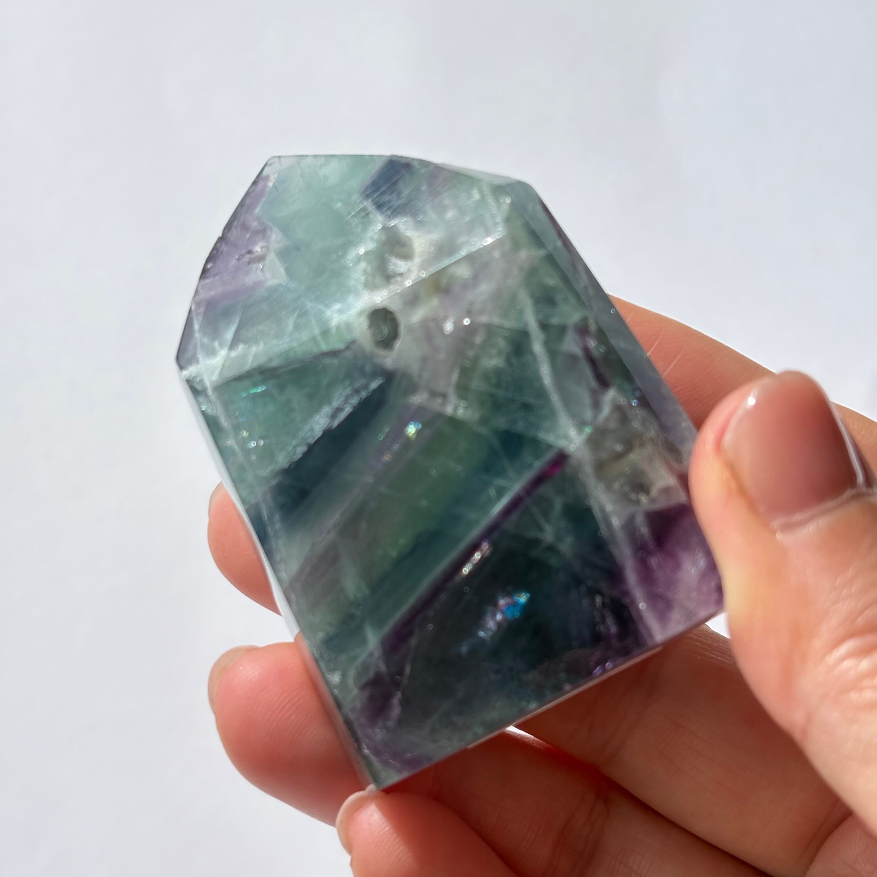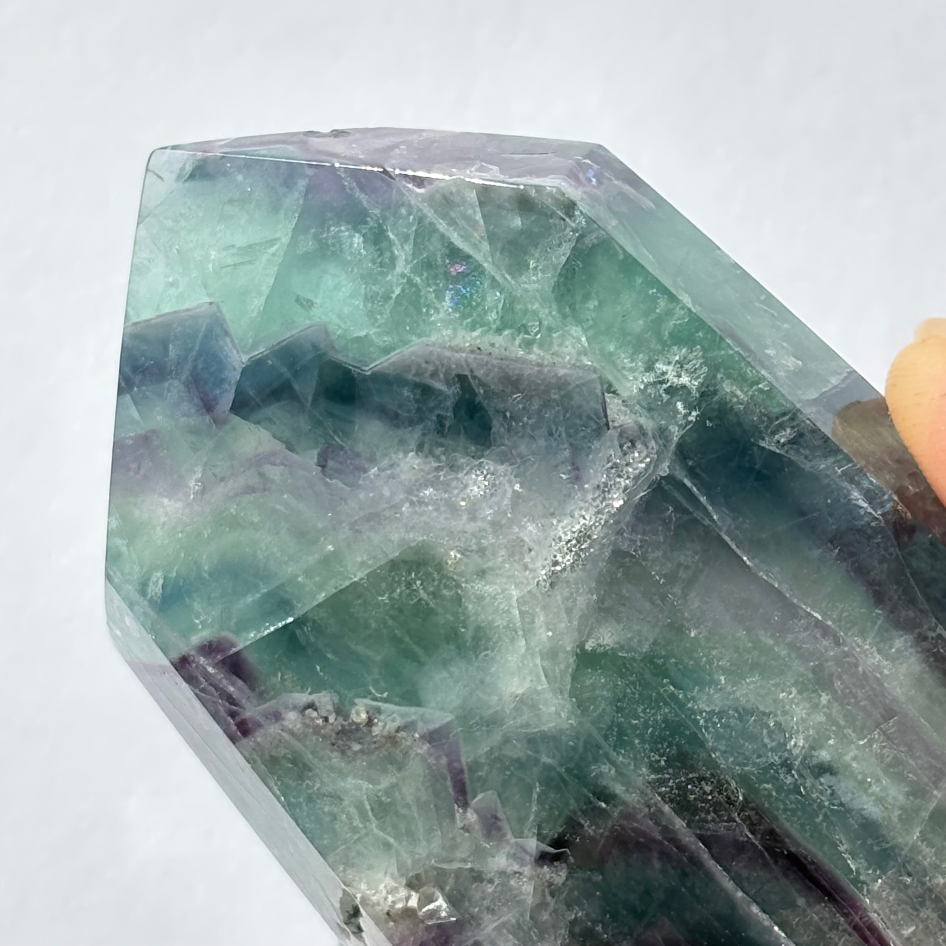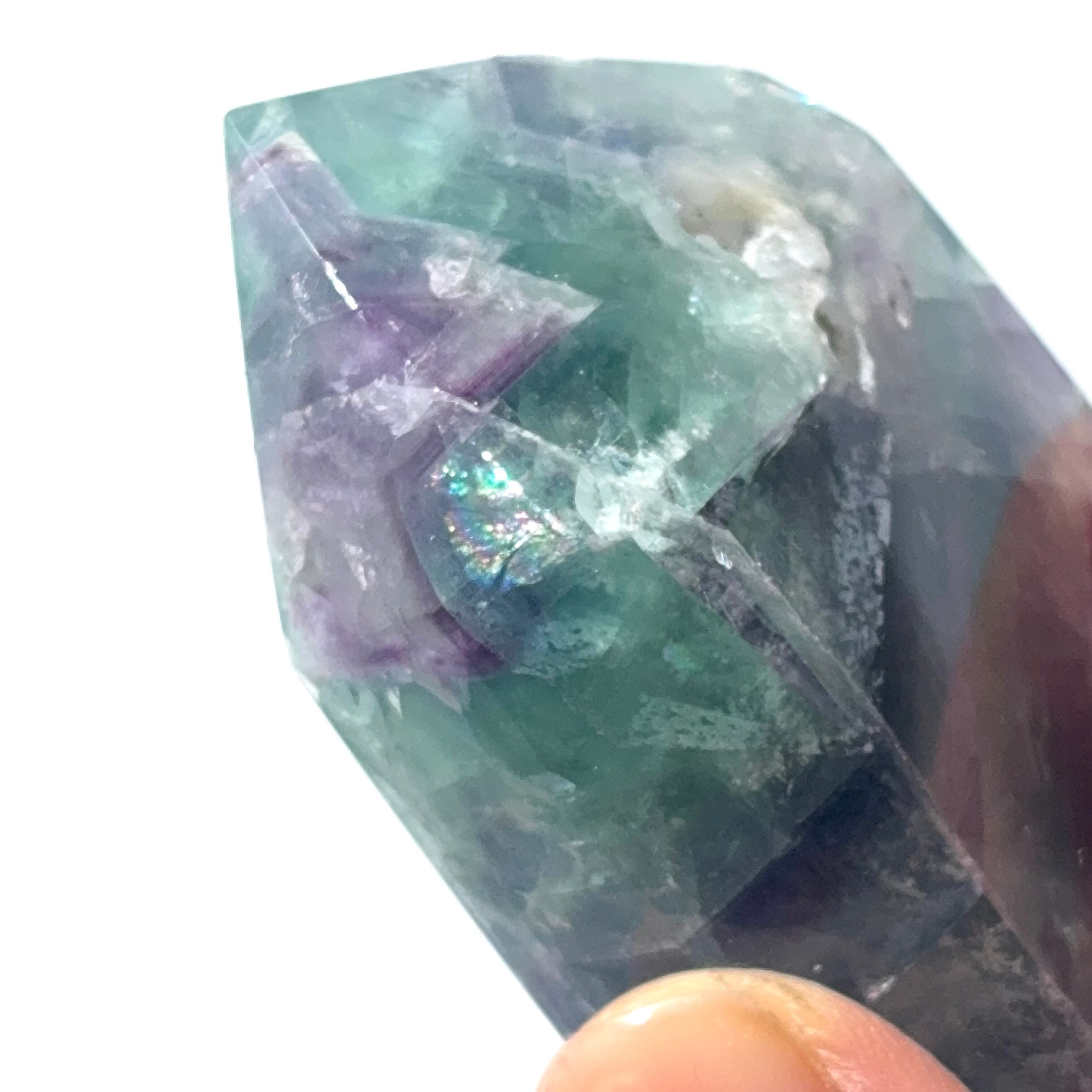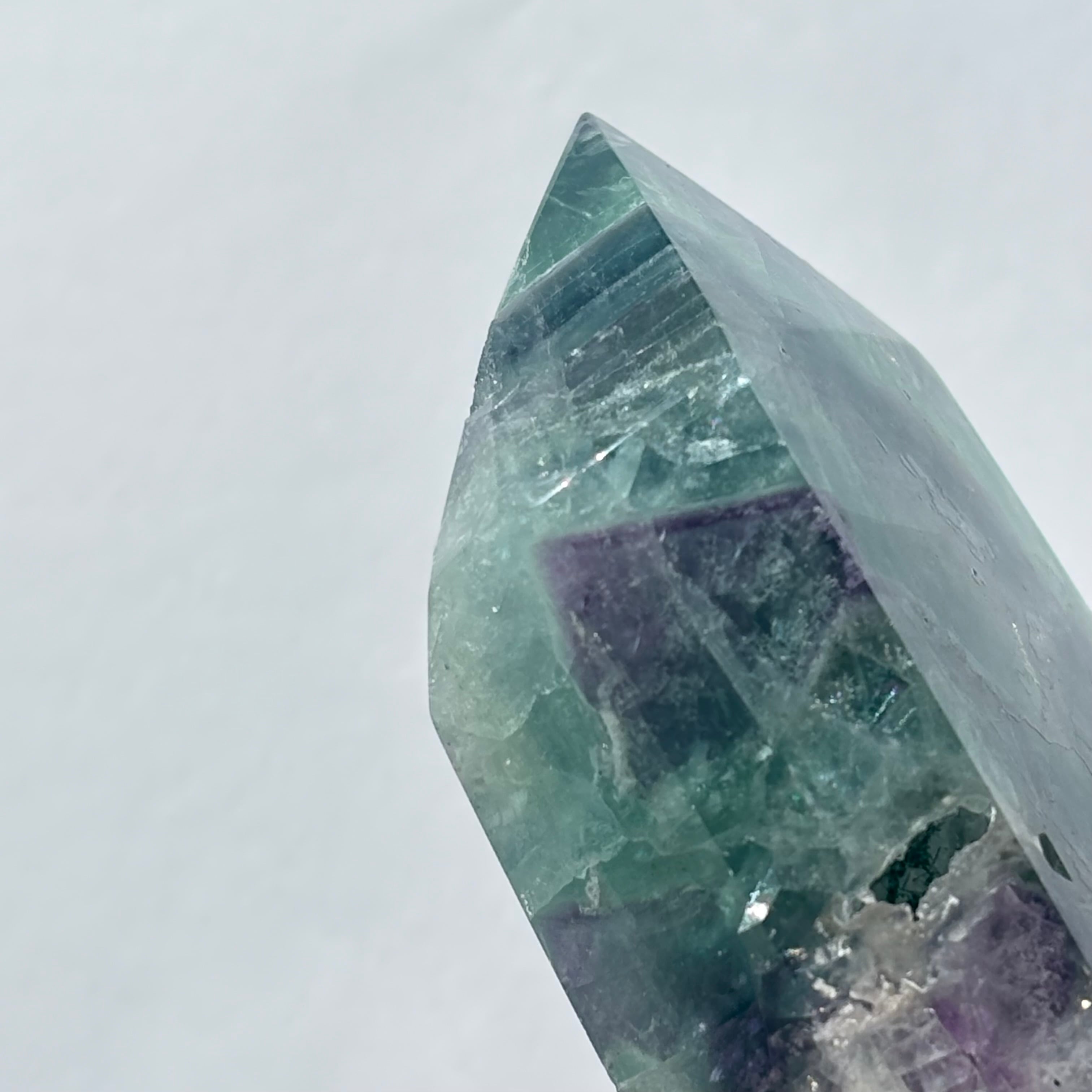 フローライト タワー4|グリーン&パープルのバイカラー|虹が見える透明結晶|天然石|パワーストーン