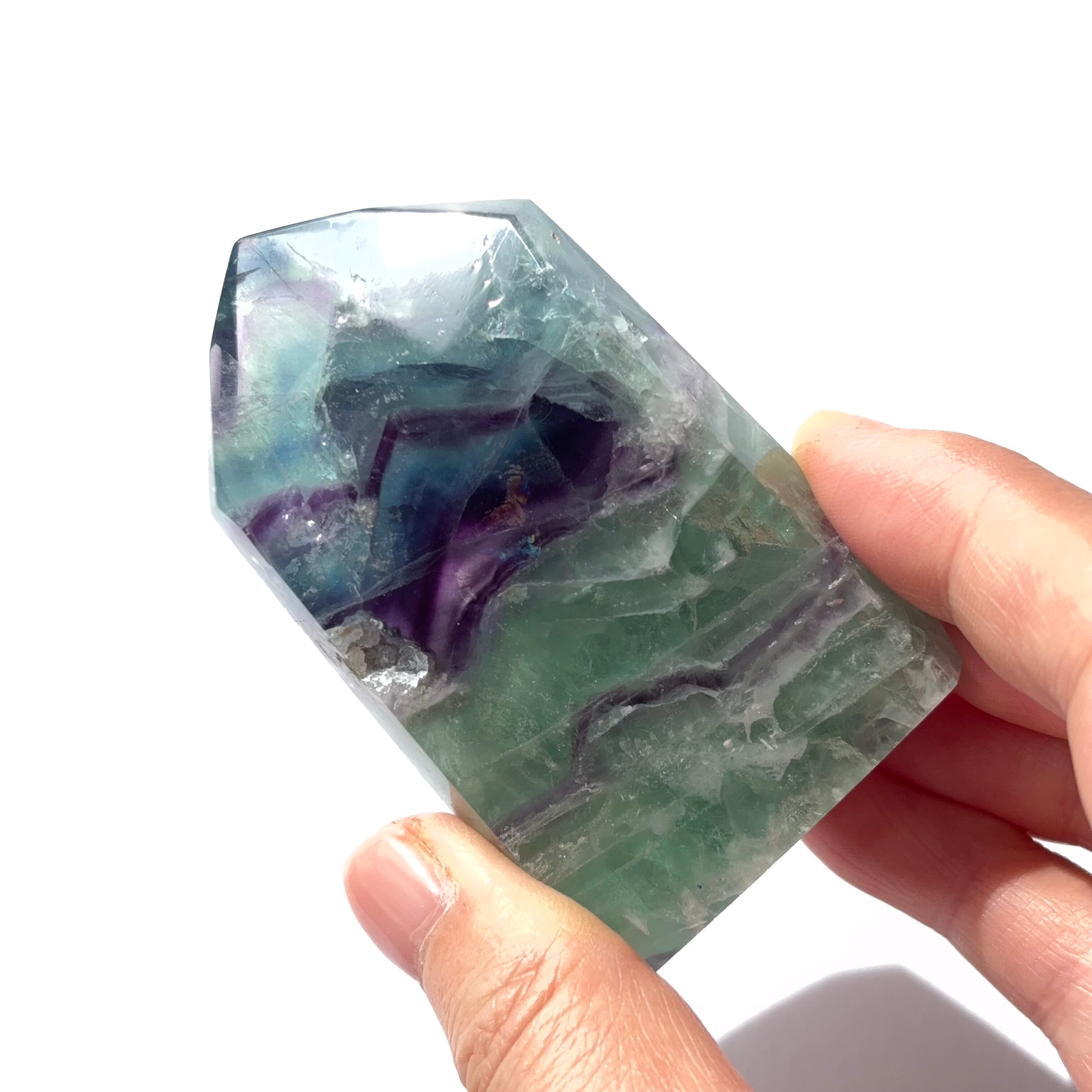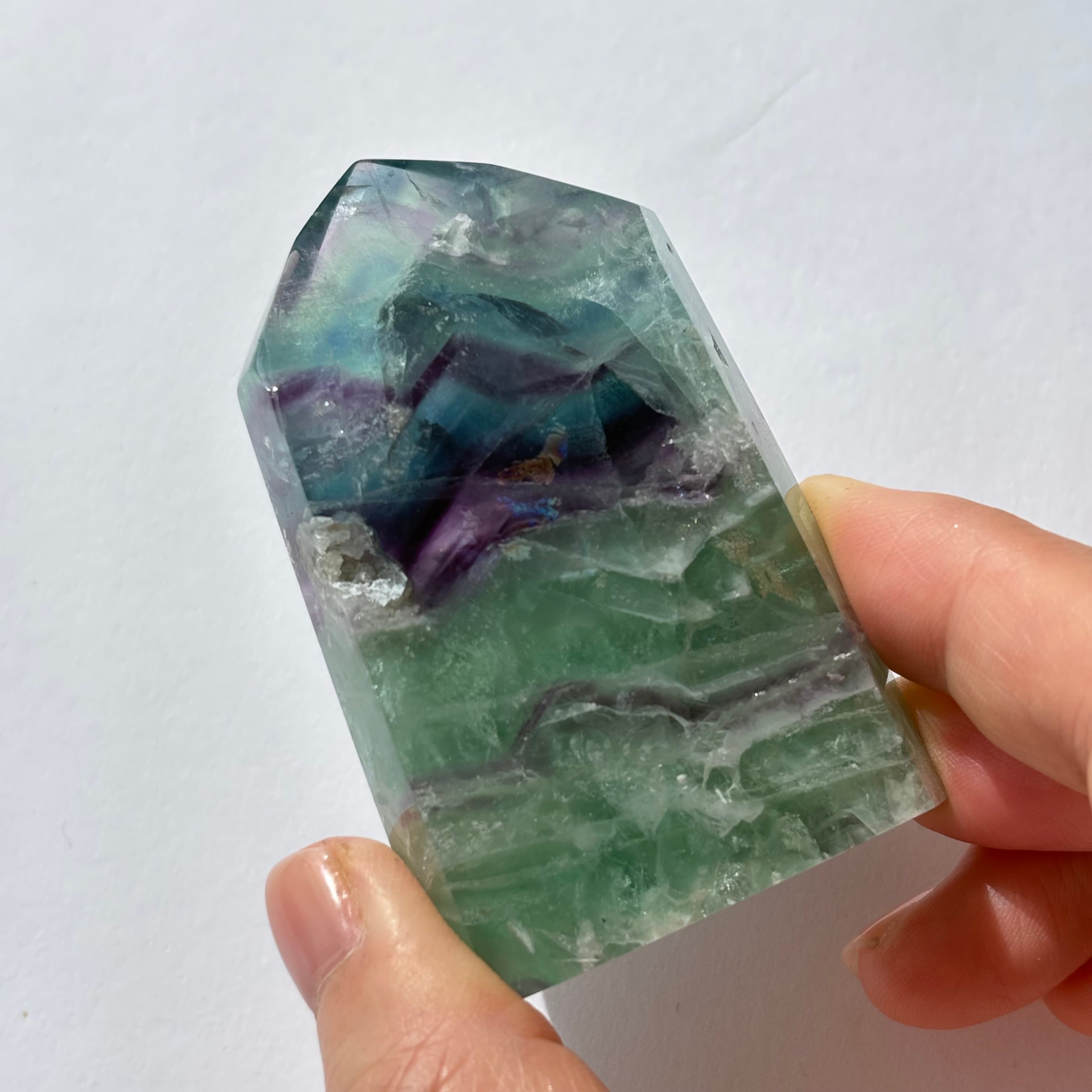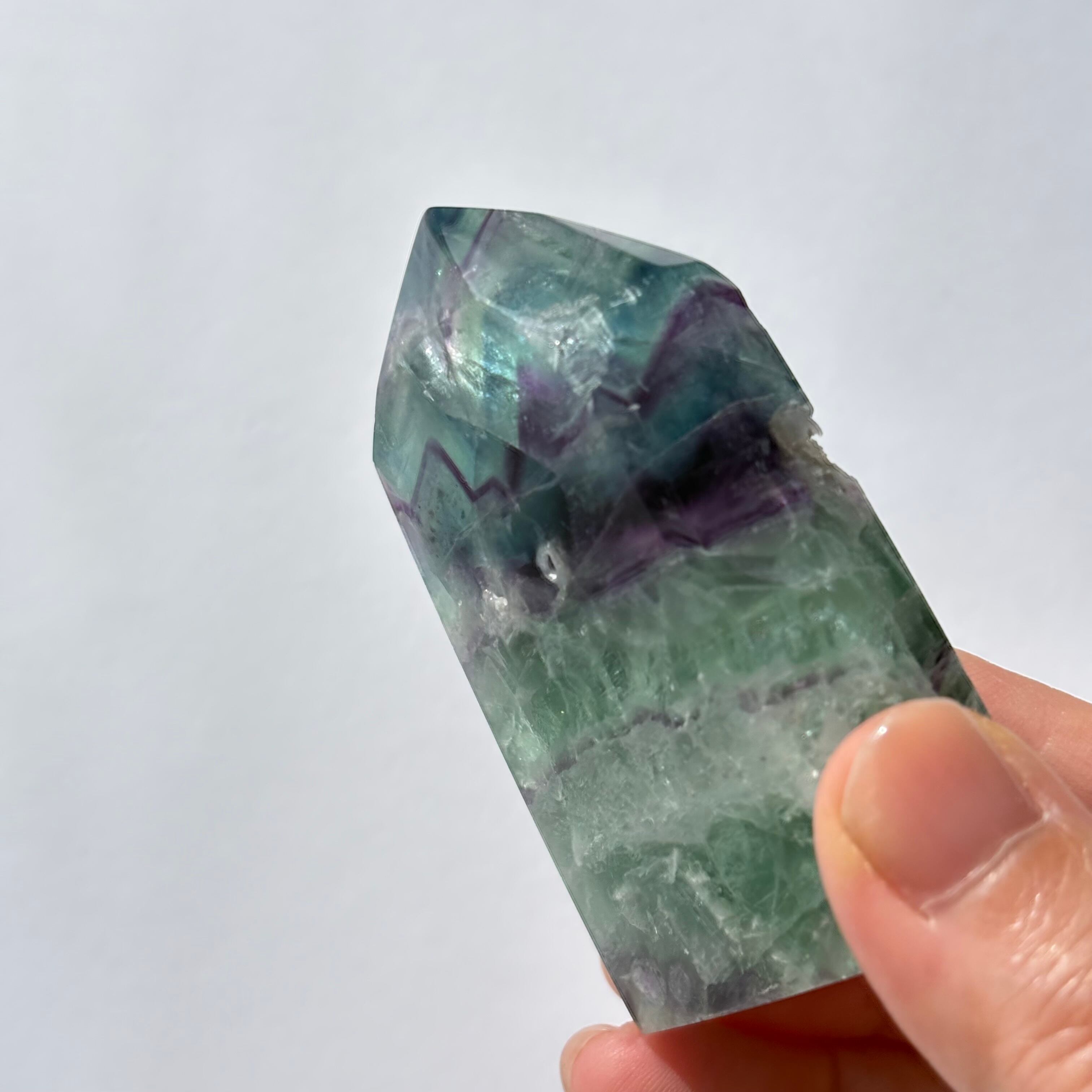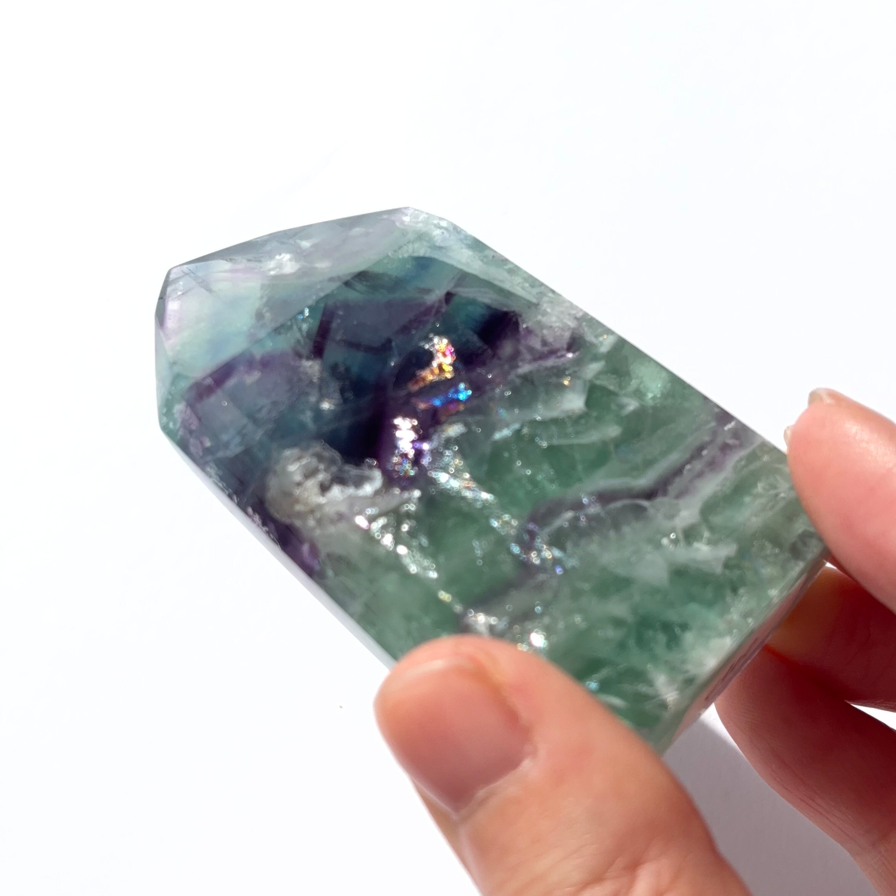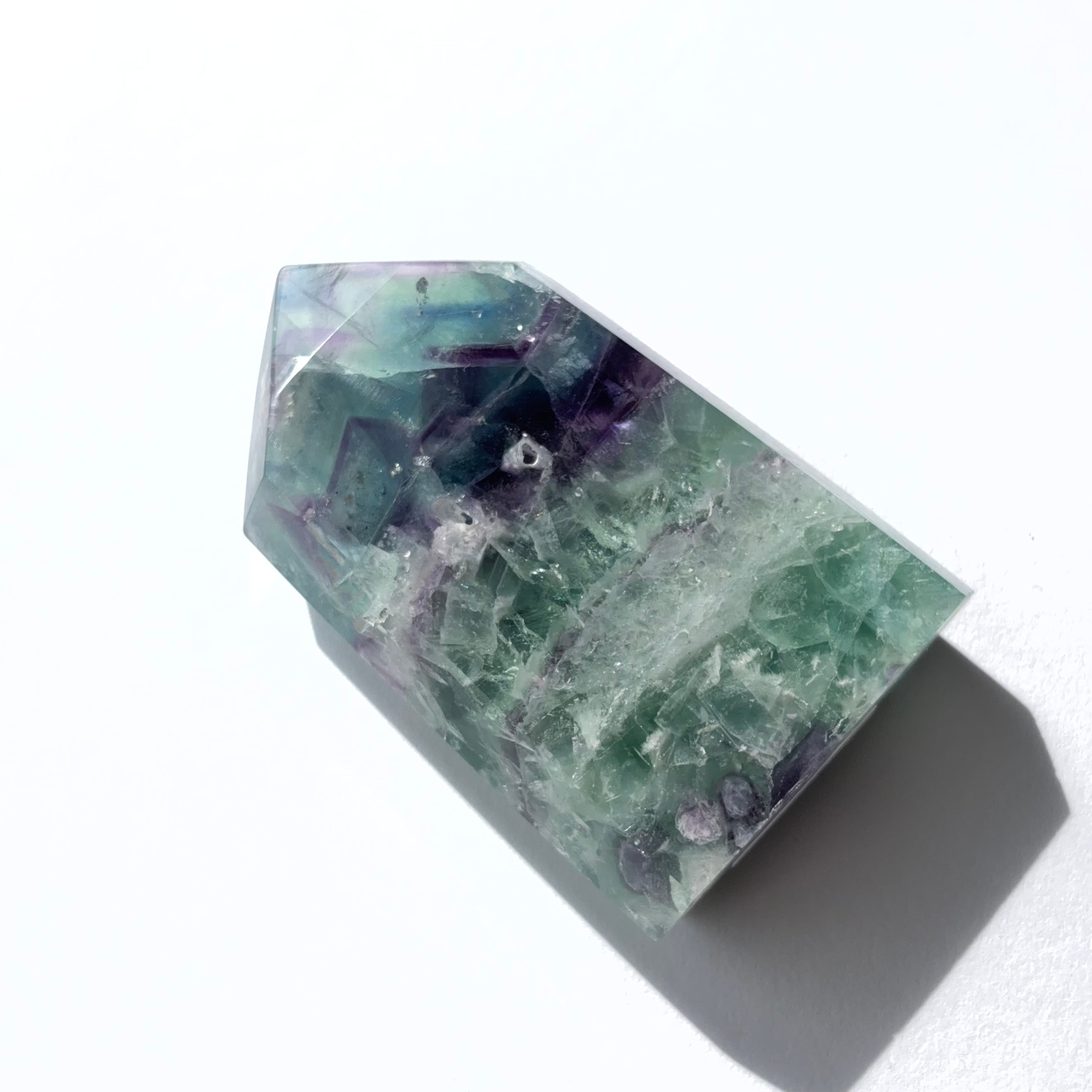 フローライト タワー4|グリーン&パープルのバイカラー1|虹が見える透明結晶|天然石|パワーストーン