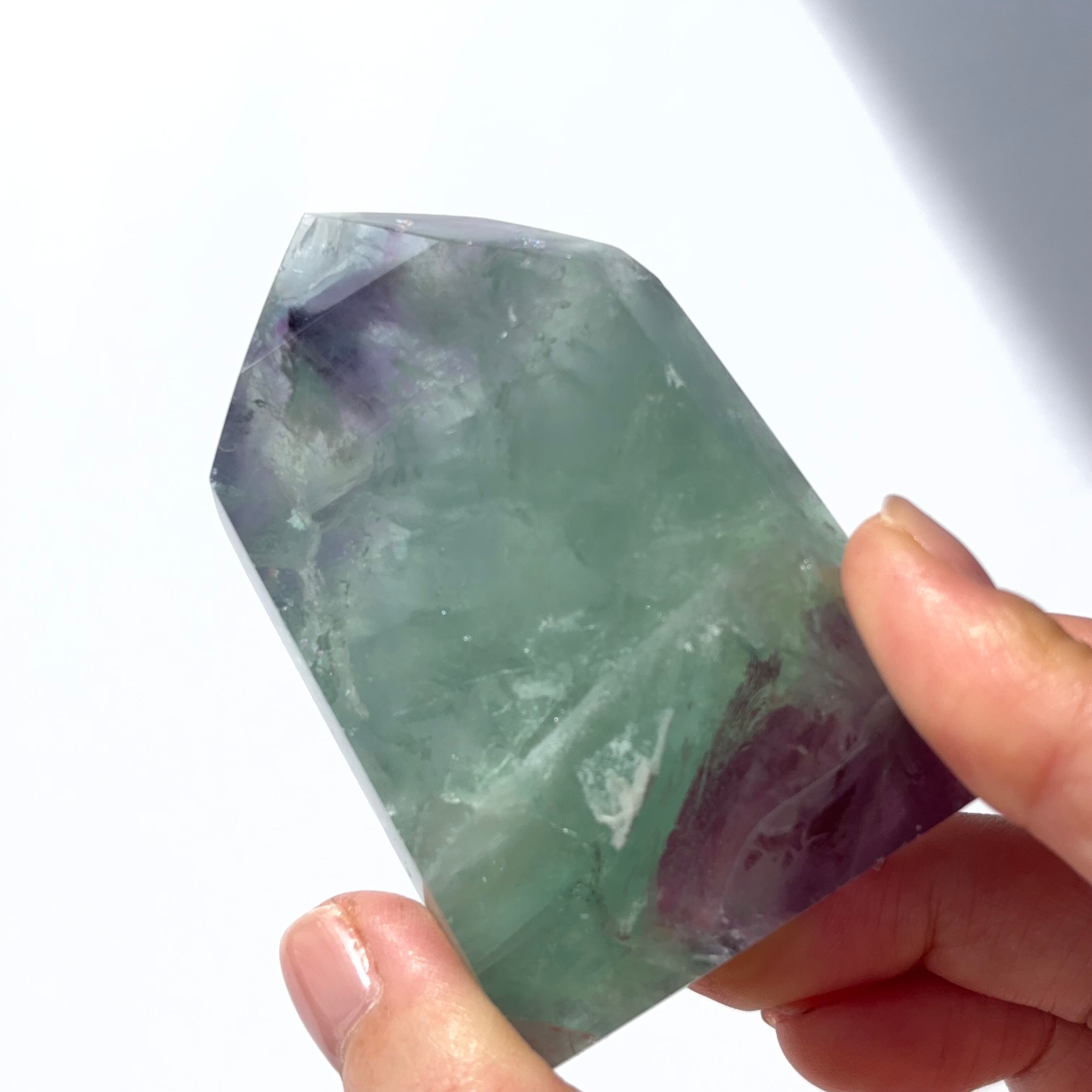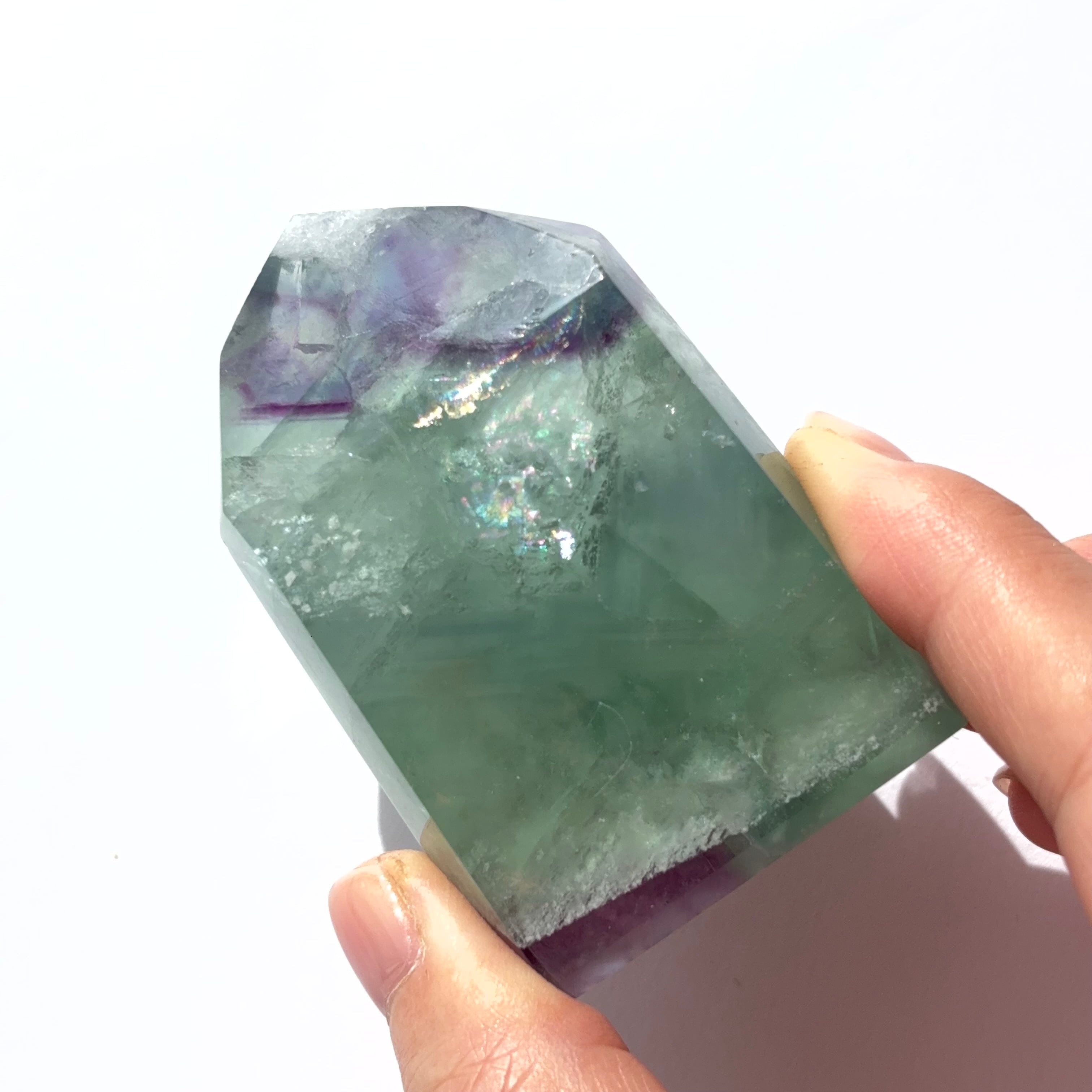 フローライト タワー6|グリーン&パープルのバイカラー|虹が見える透明結晶|天然石|パワーストーン