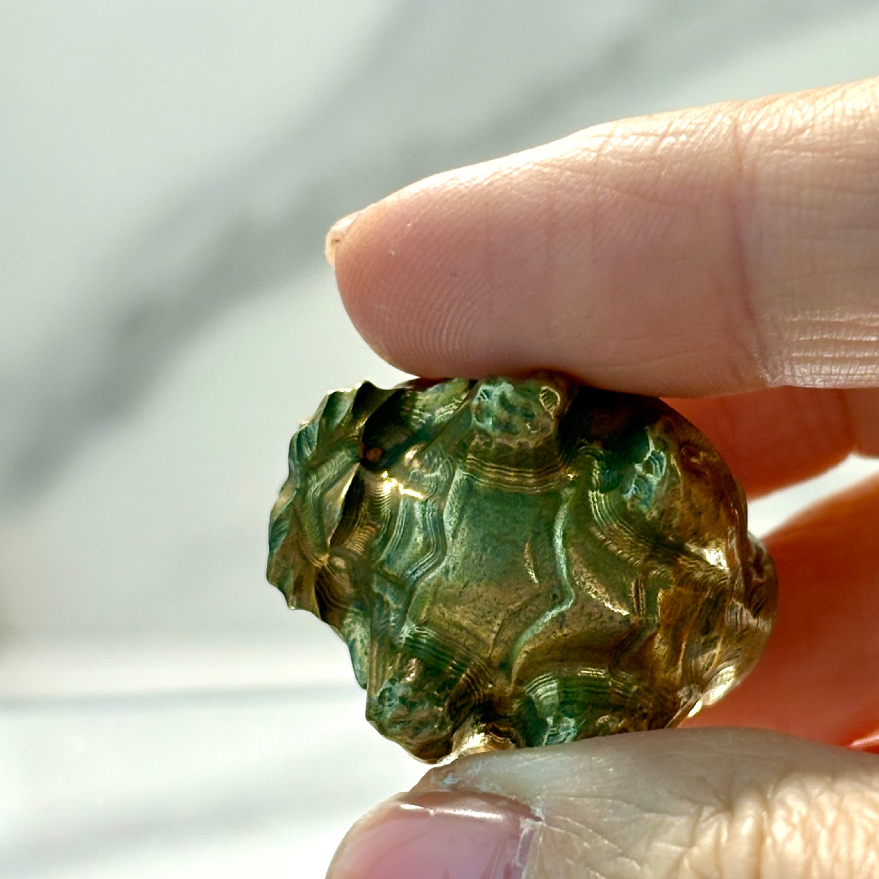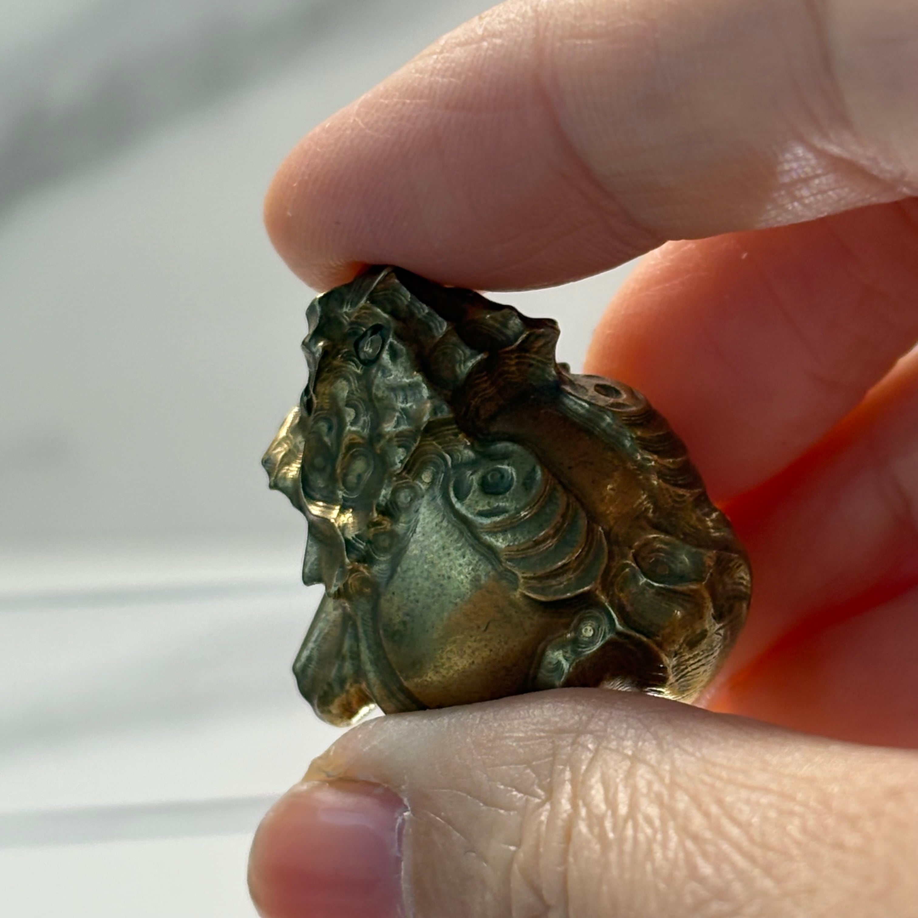ずっしりとした重みと輝きを持つ、パイライトの龍亀(ロングイ)カービング。