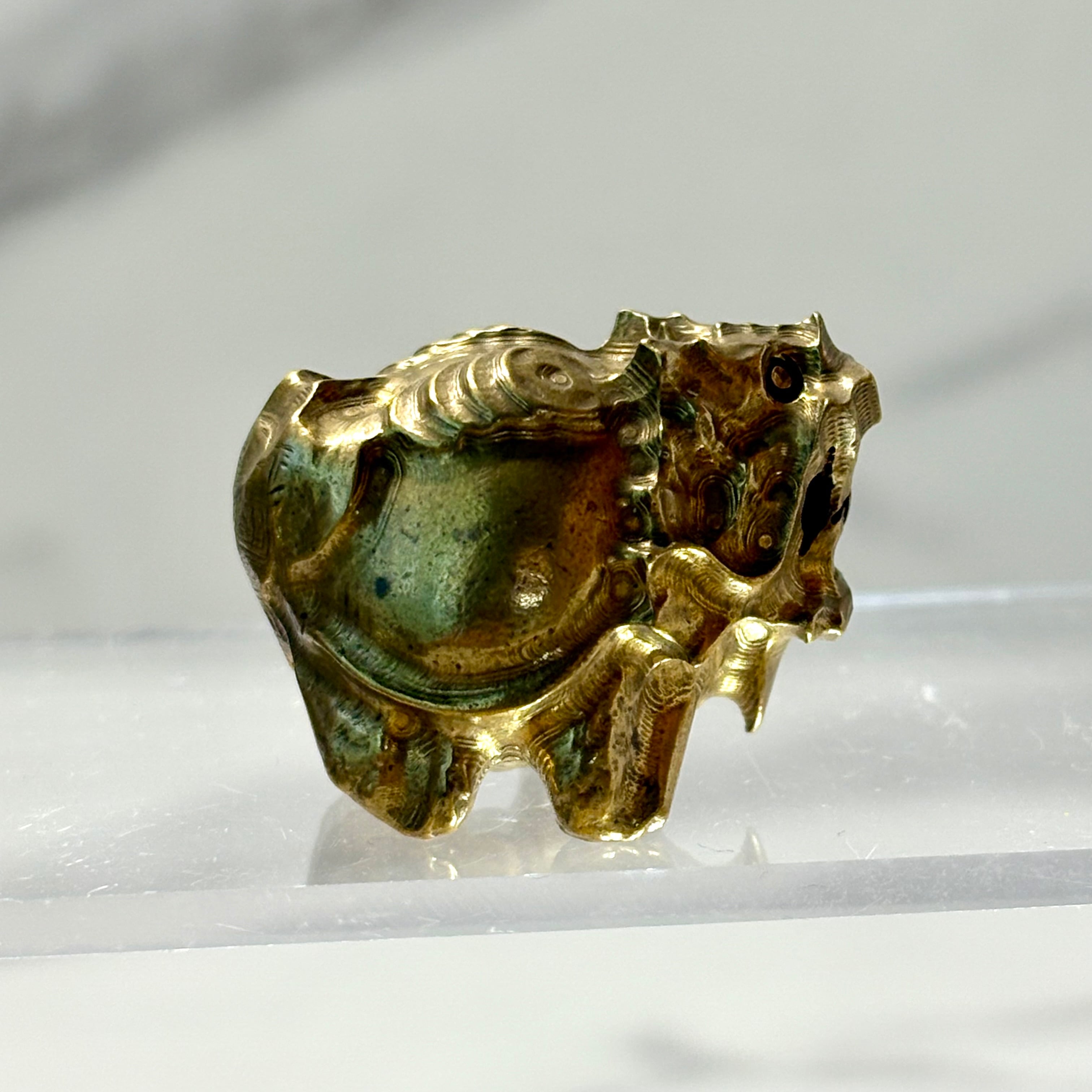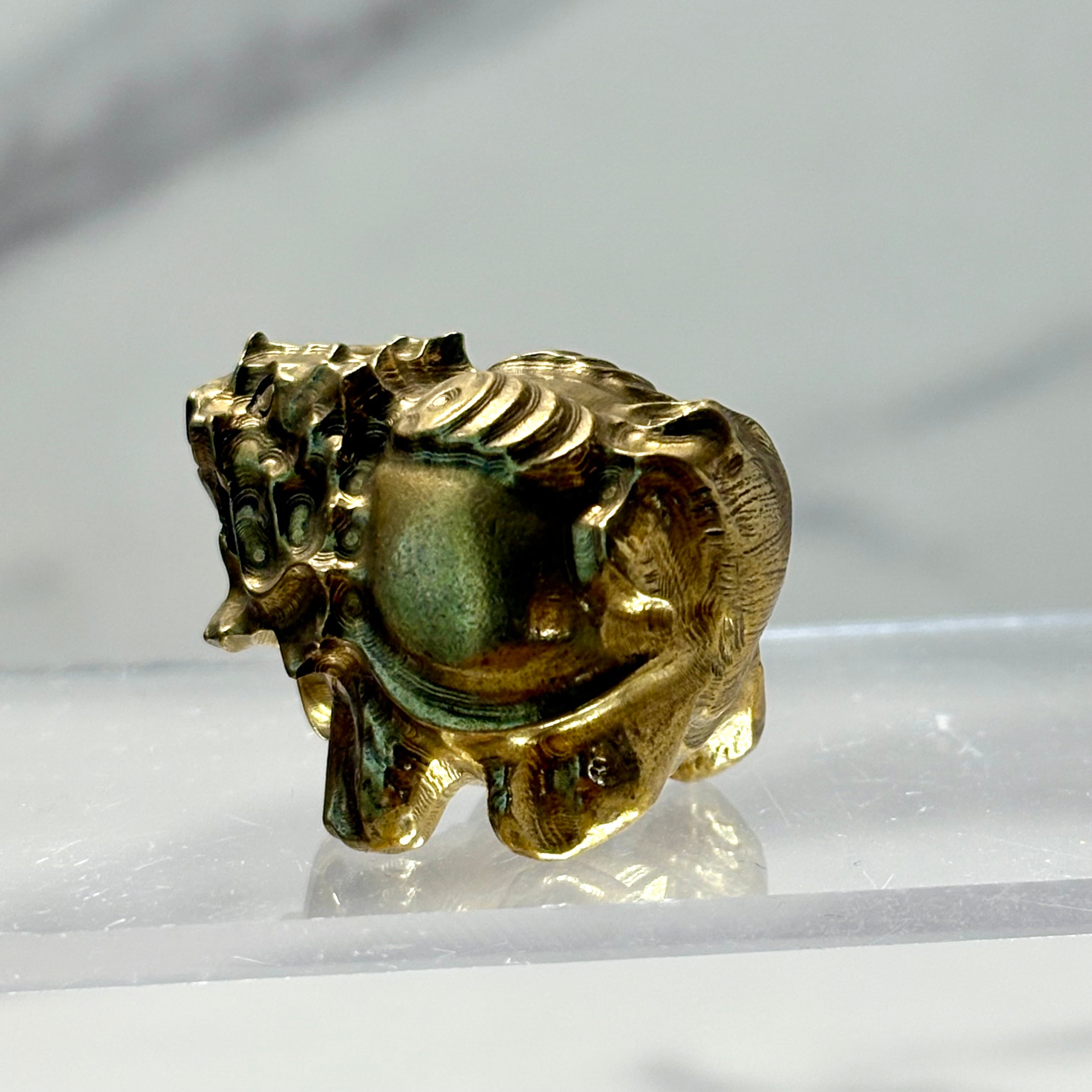 ゴールドの光沢が美しく、背中には小銭を背負った縁起の良いデザインです。