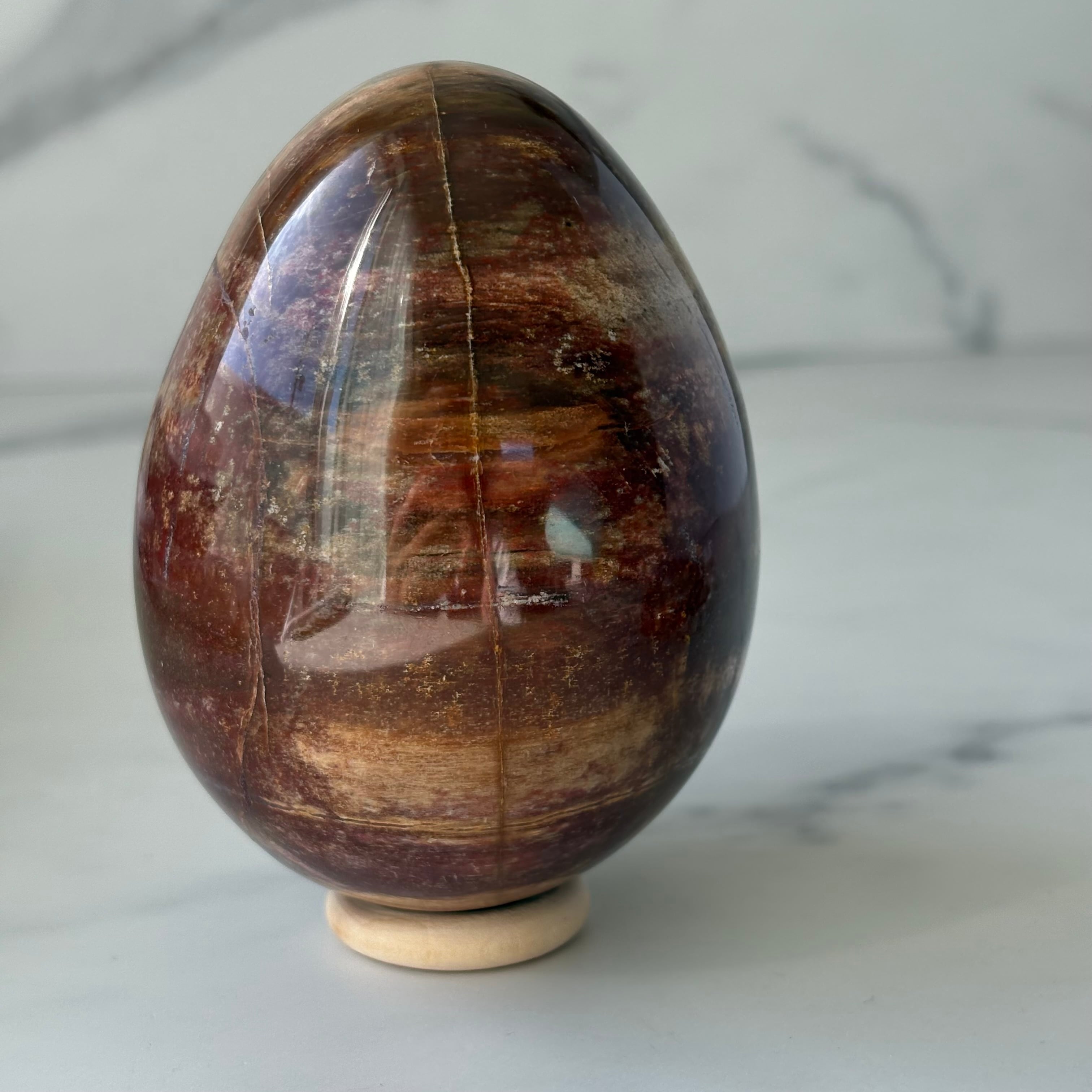 ペトリファイドウッド(珪化木)の卵型カービングです。