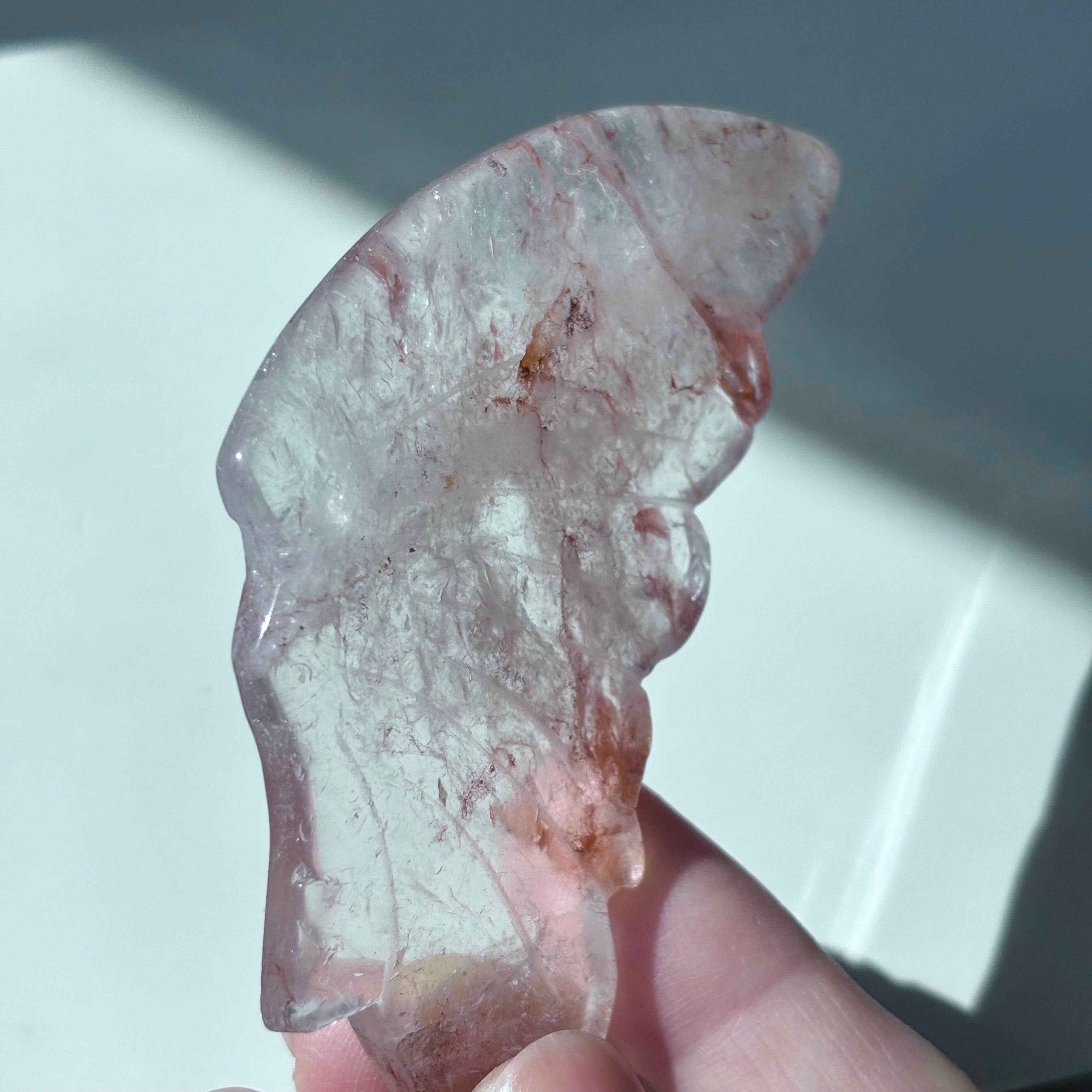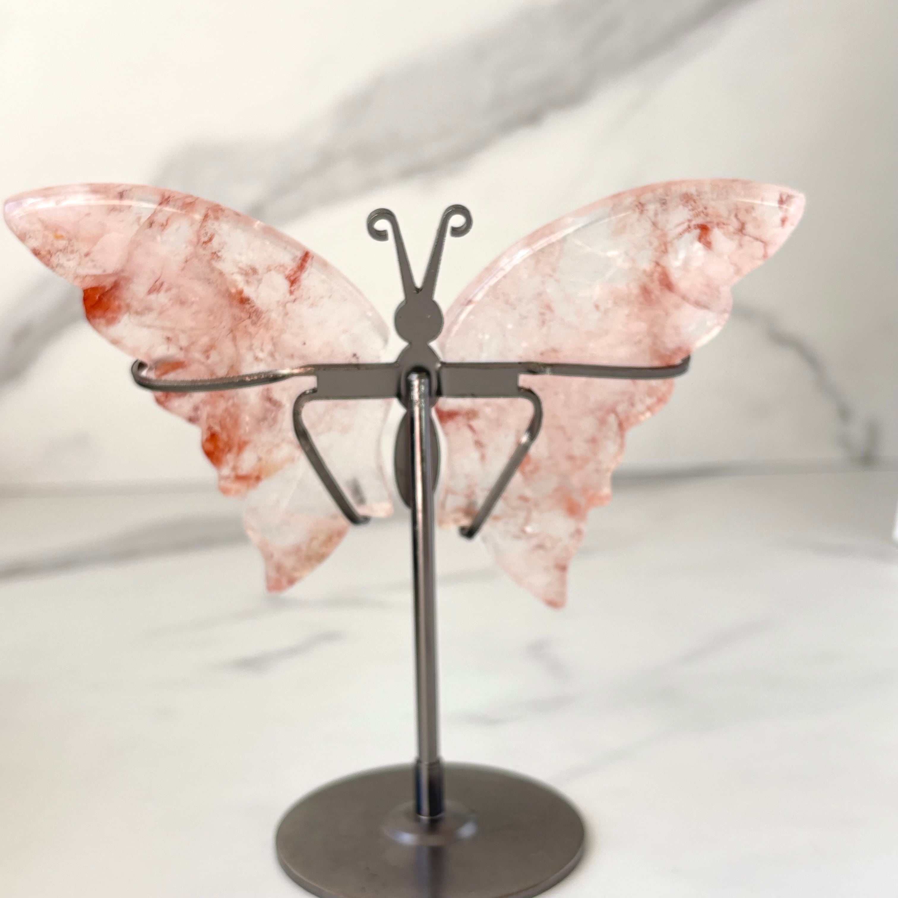 ファイヤークォーツ 蝶々|台座付き|透明感と炎の輝きが美しい天然石オブジェ|Fire Quartz