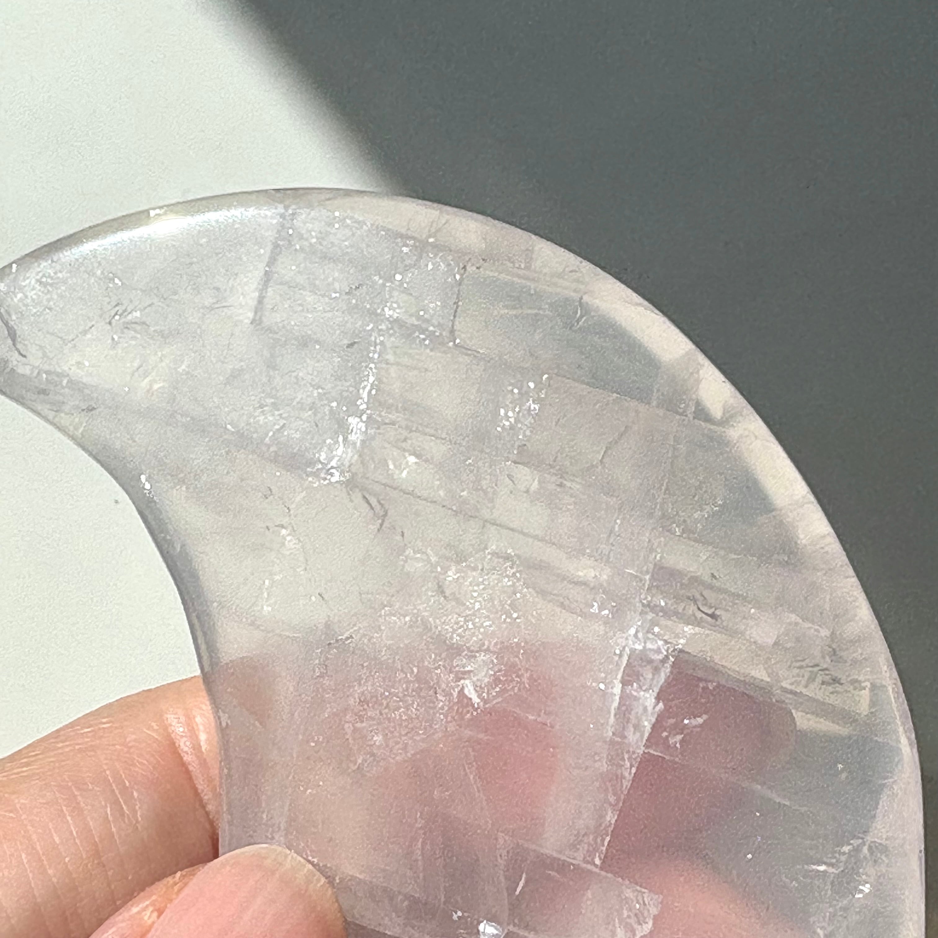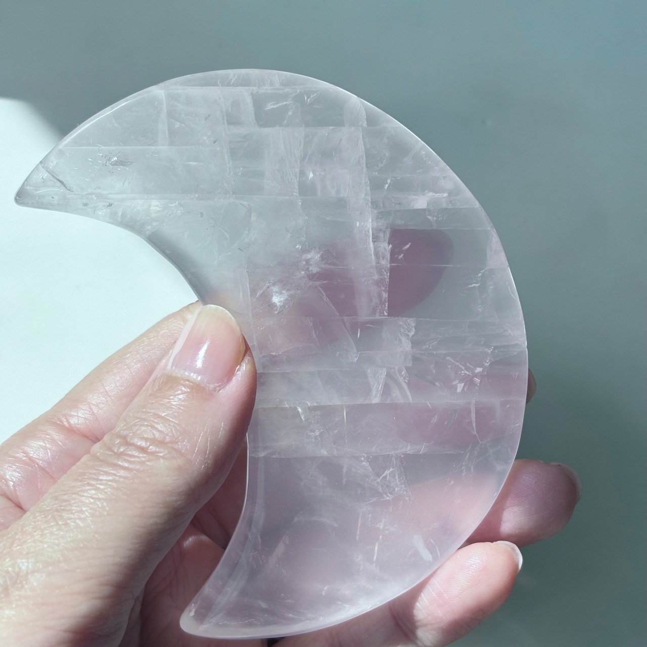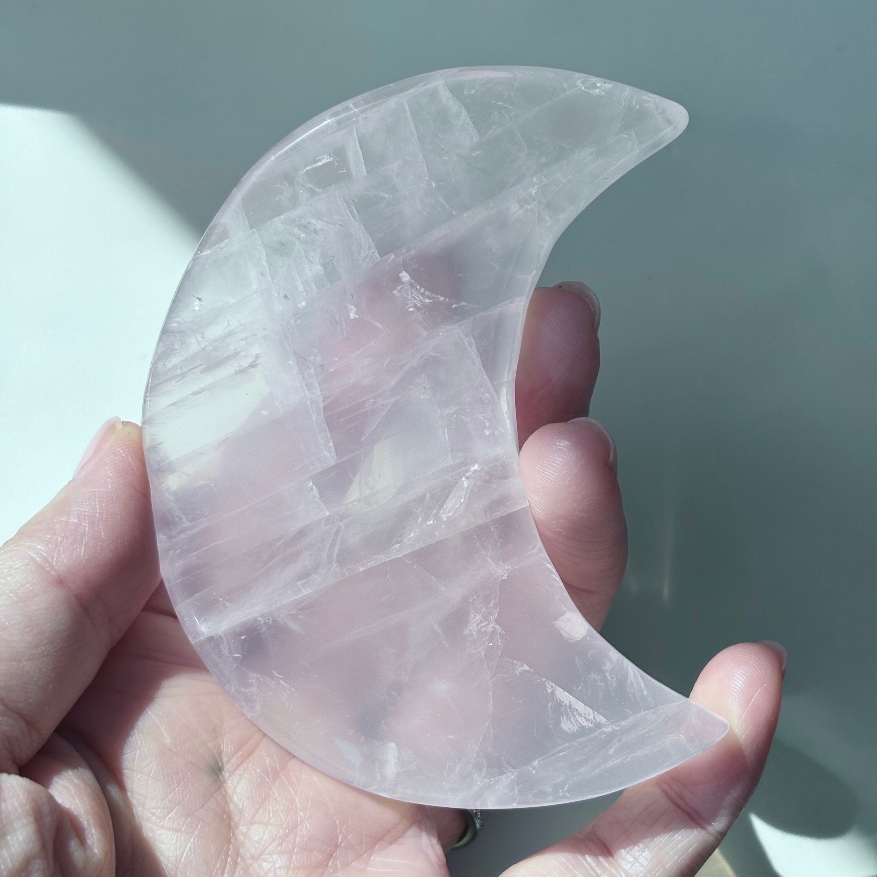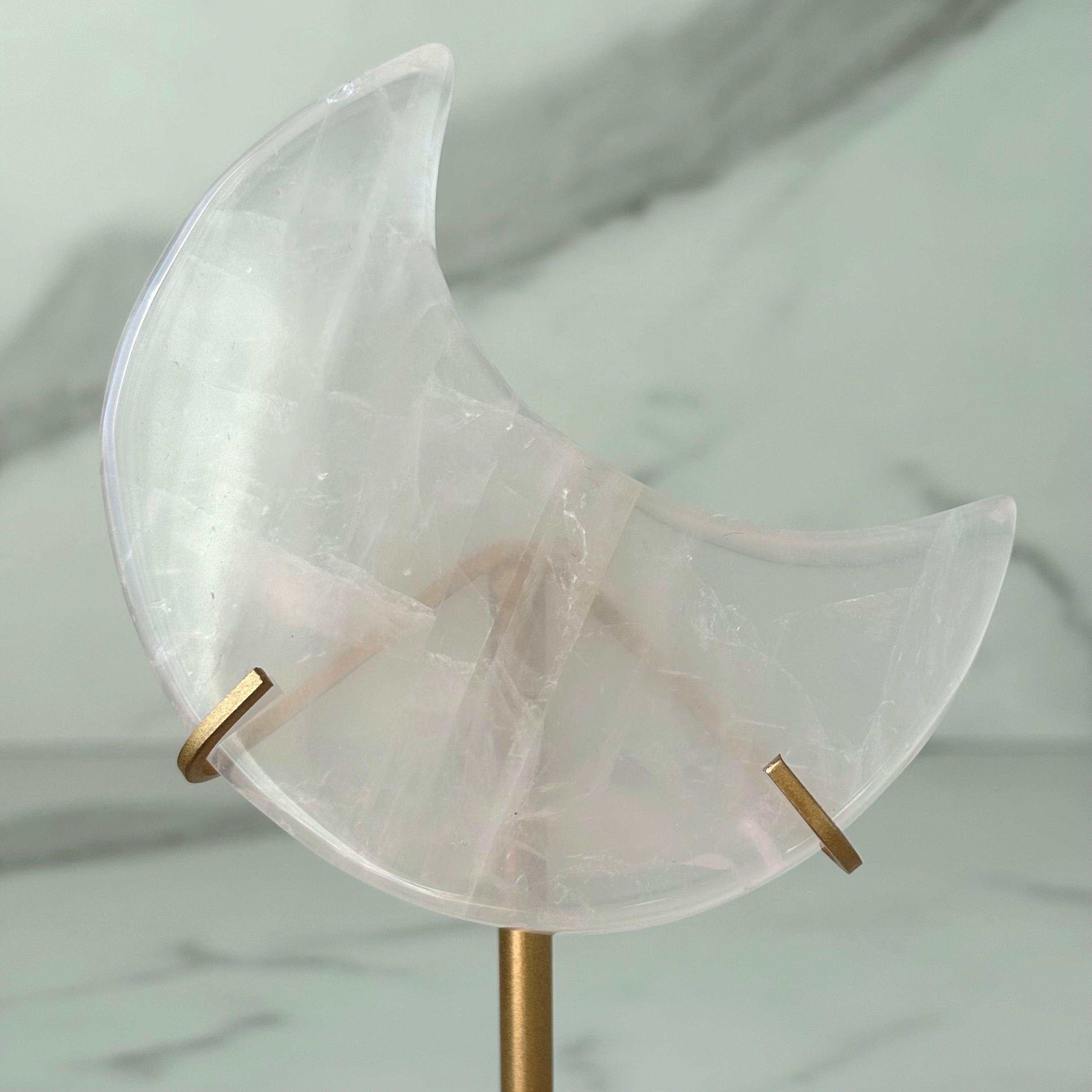 ローズクォーツ 月型|台座付き|やさしいピンクの癒しのムーンオブジェ|Rose Quartz Moon 天然石|パワーストーン