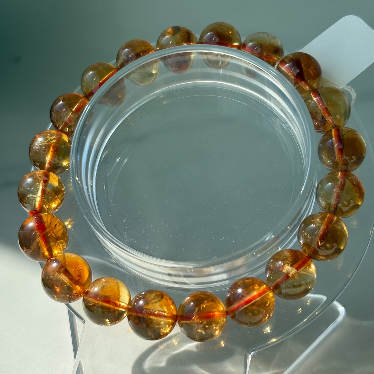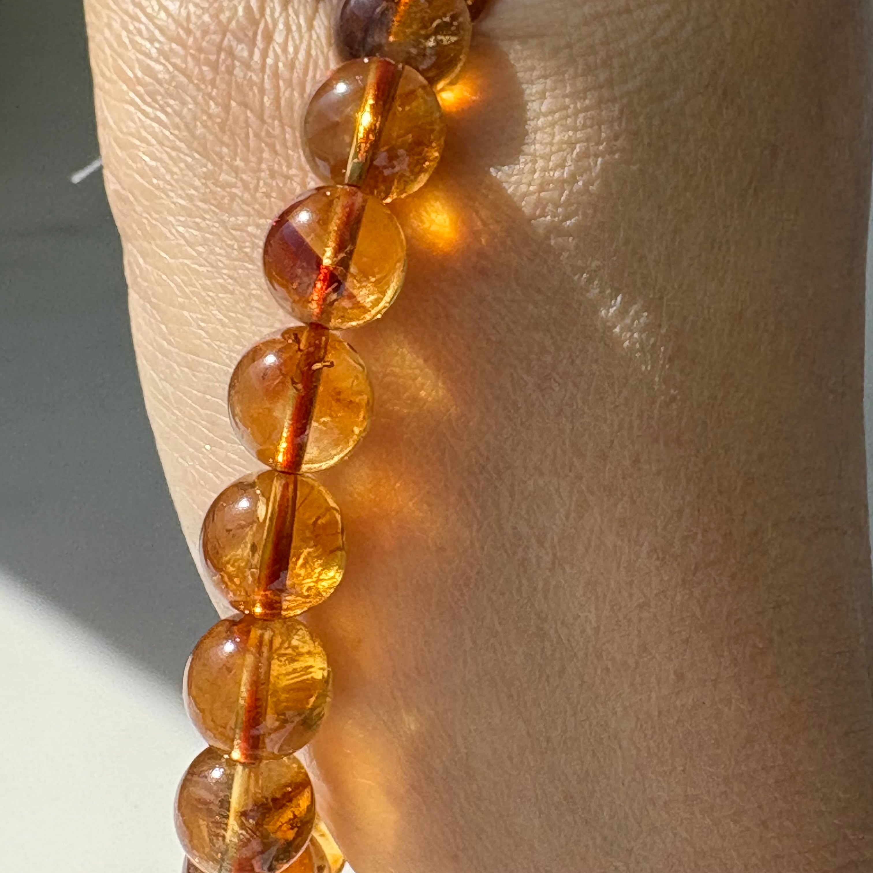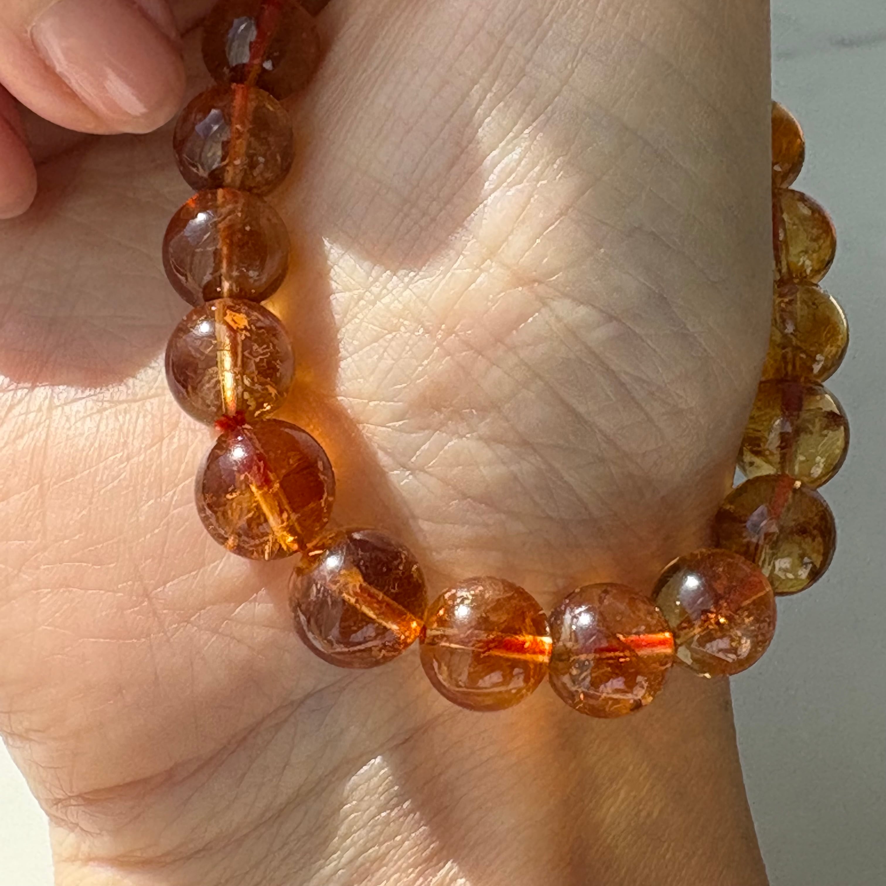 透明感のある琥珀色が美しい、アンバーのブレスレットです。