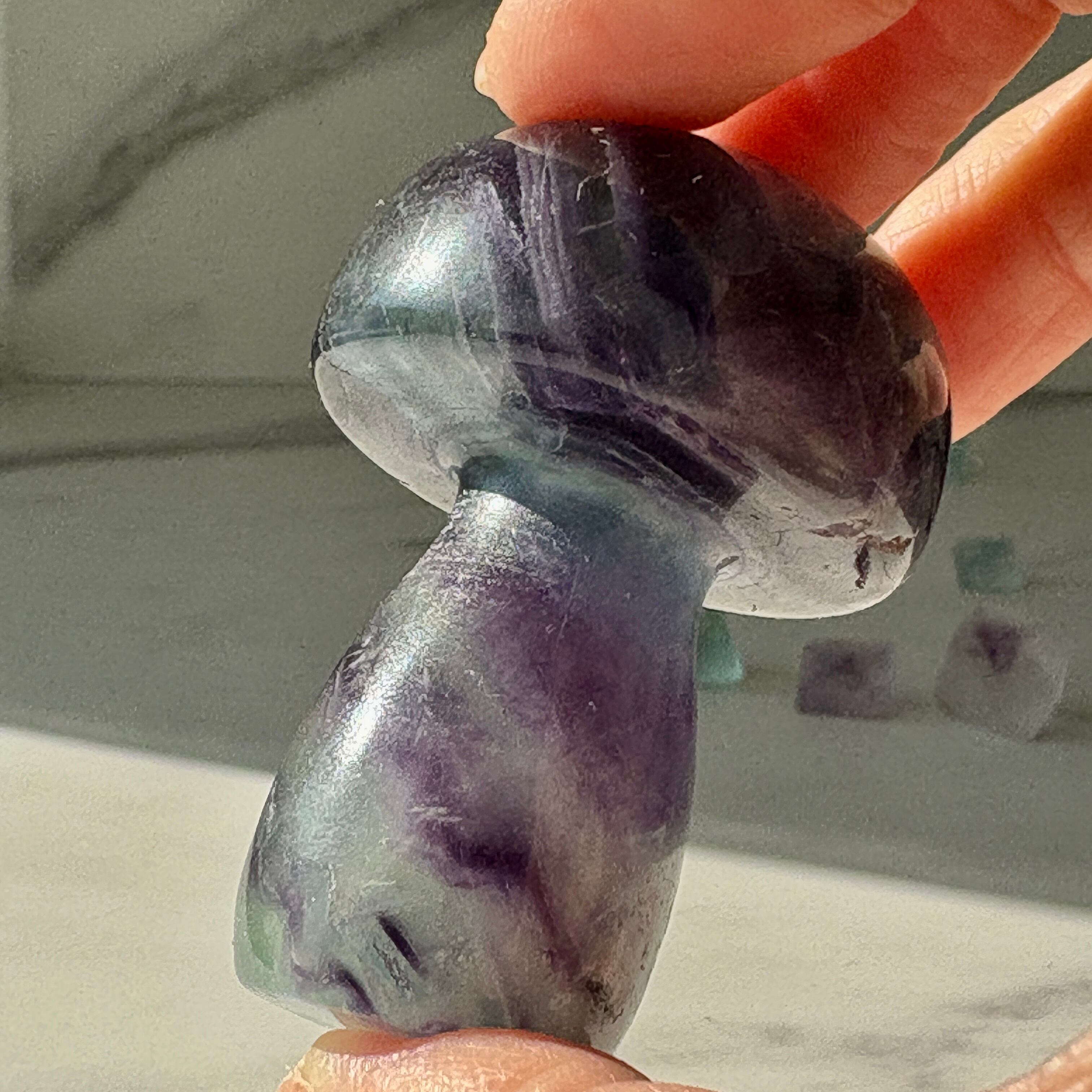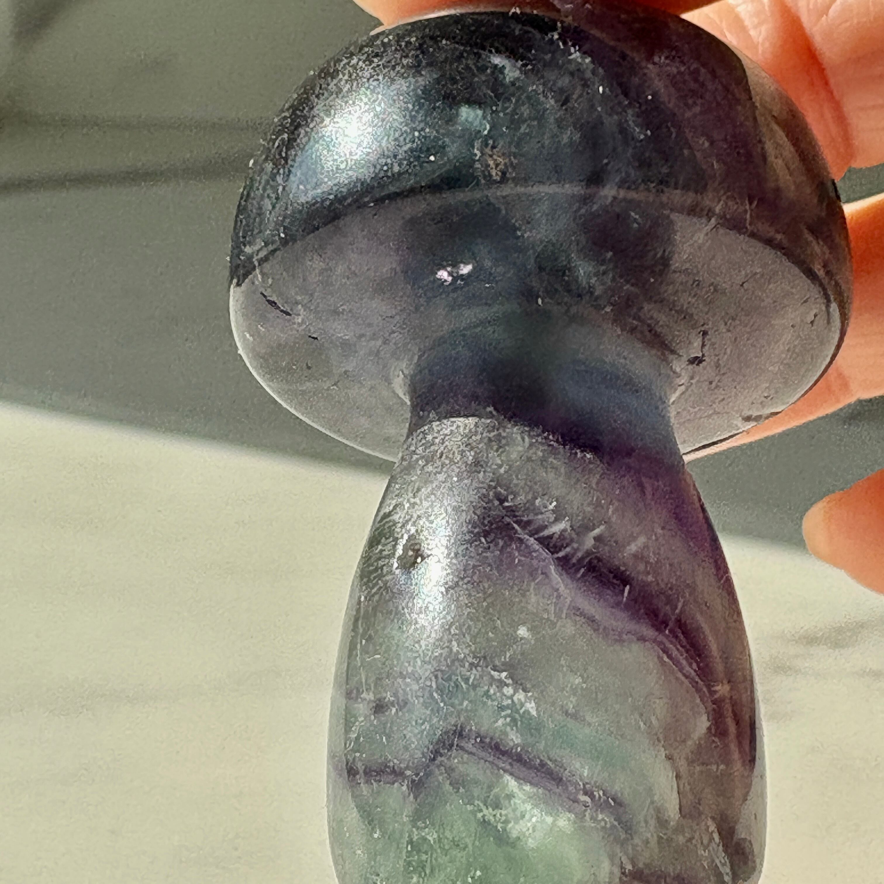 フローライト マッシュルーム 4|グリーンとパープルが美しい きのこ型天然石|インテリアストーン|天然石|パワーストーン