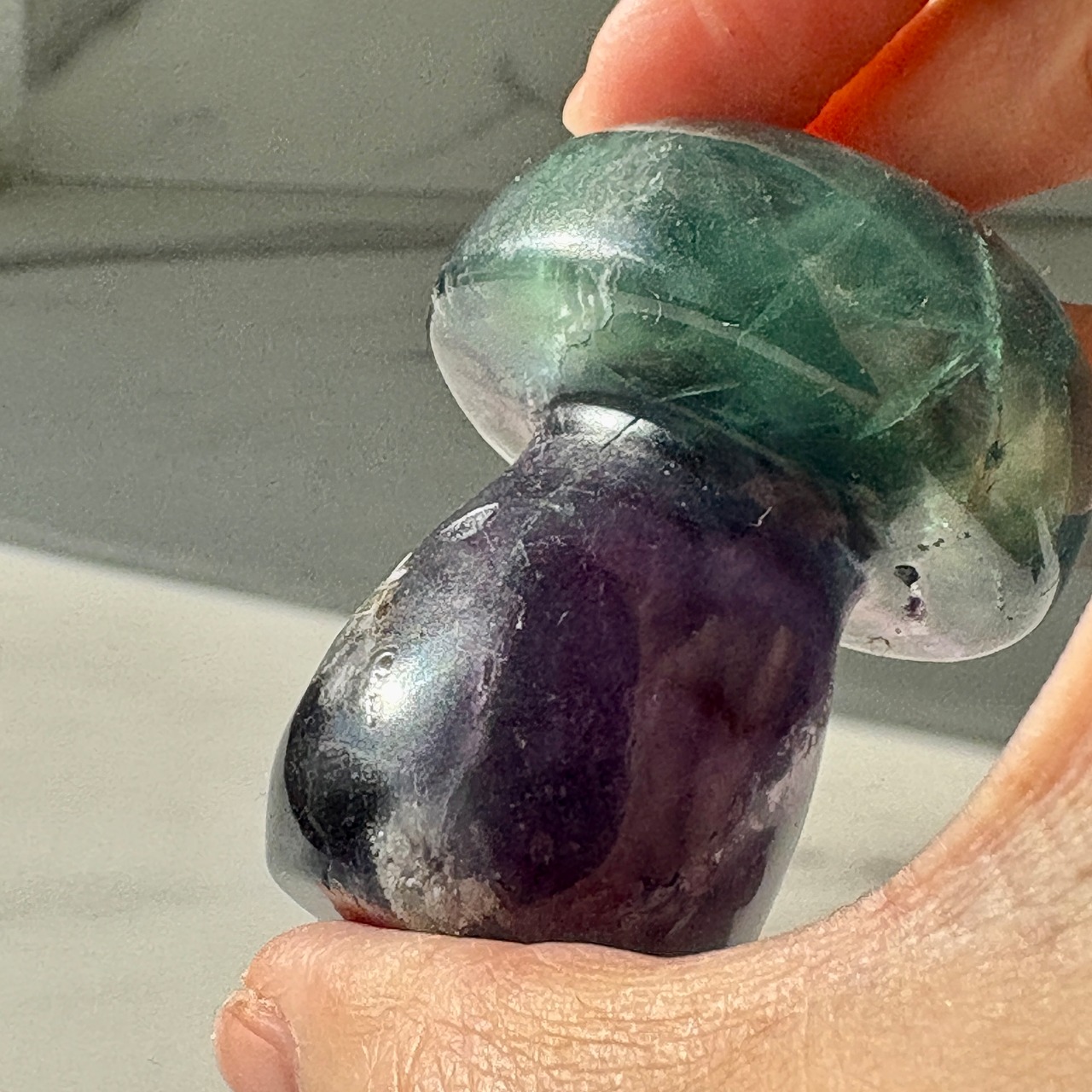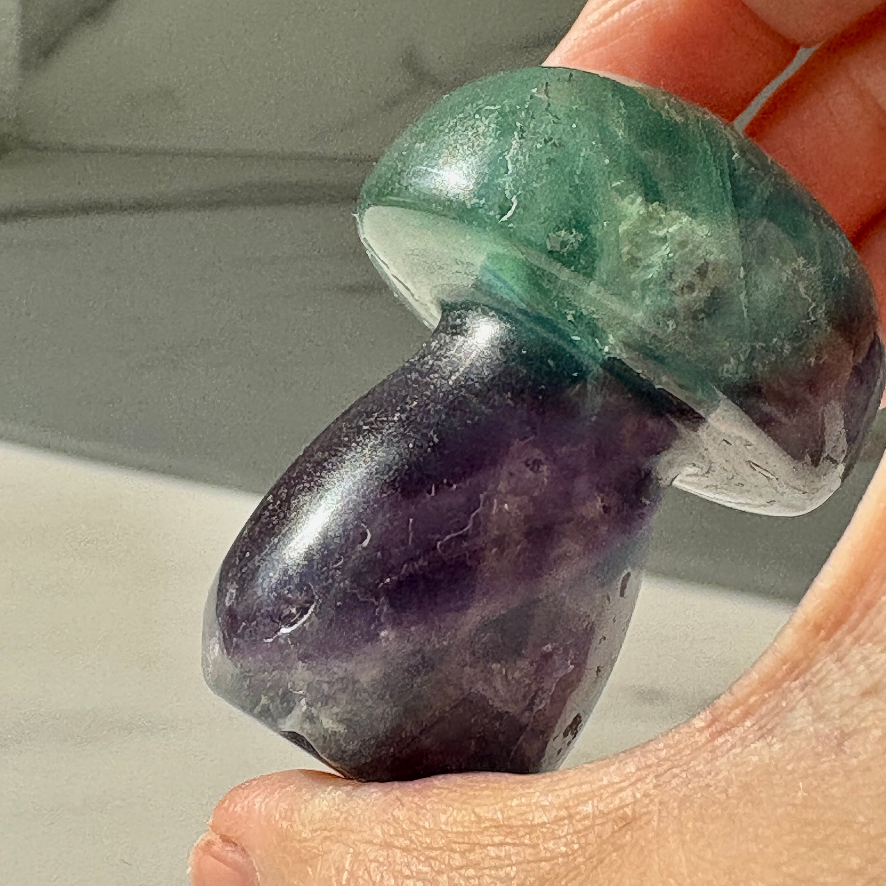 フローライト マッシュルーム 9|グリーンとパープルが美しい きのこ型天然石|インテリアストーン|天然石|パワーストーン