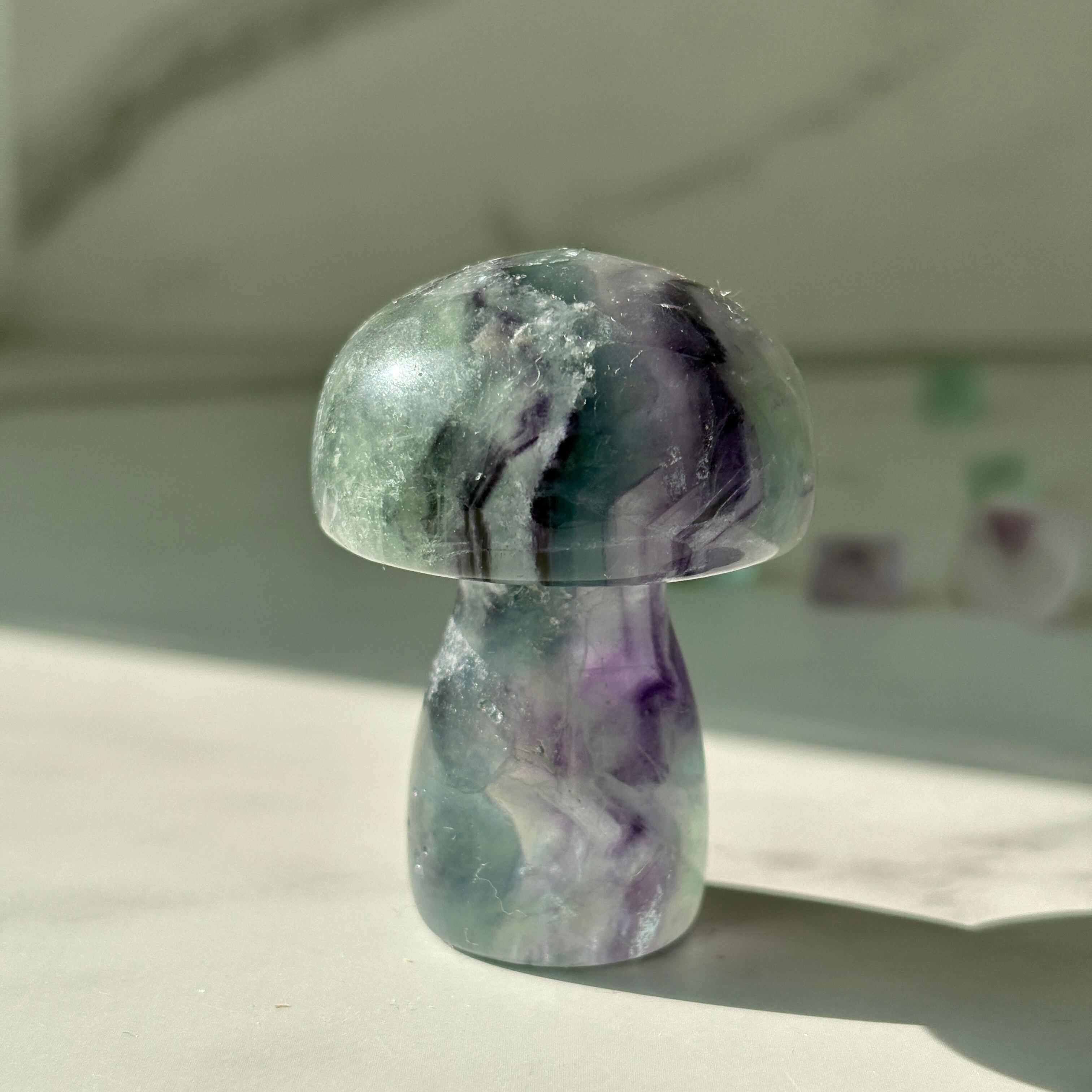 フローライト マッシュルーム 5|グリーンとパープルが美しい きのこ型天然石|インテリアストーン|天然石|パワーストーン