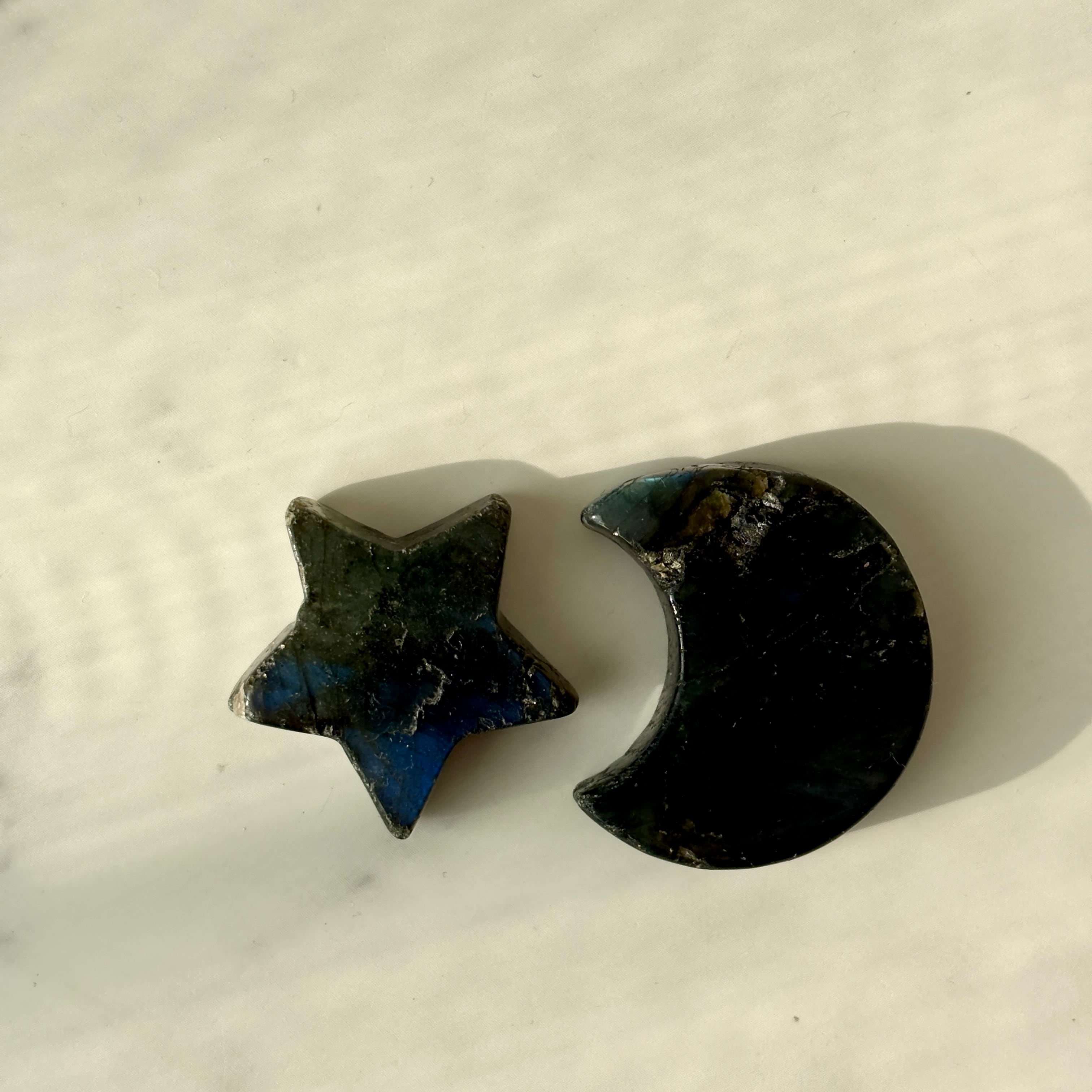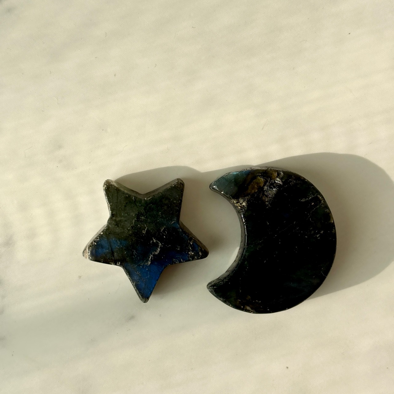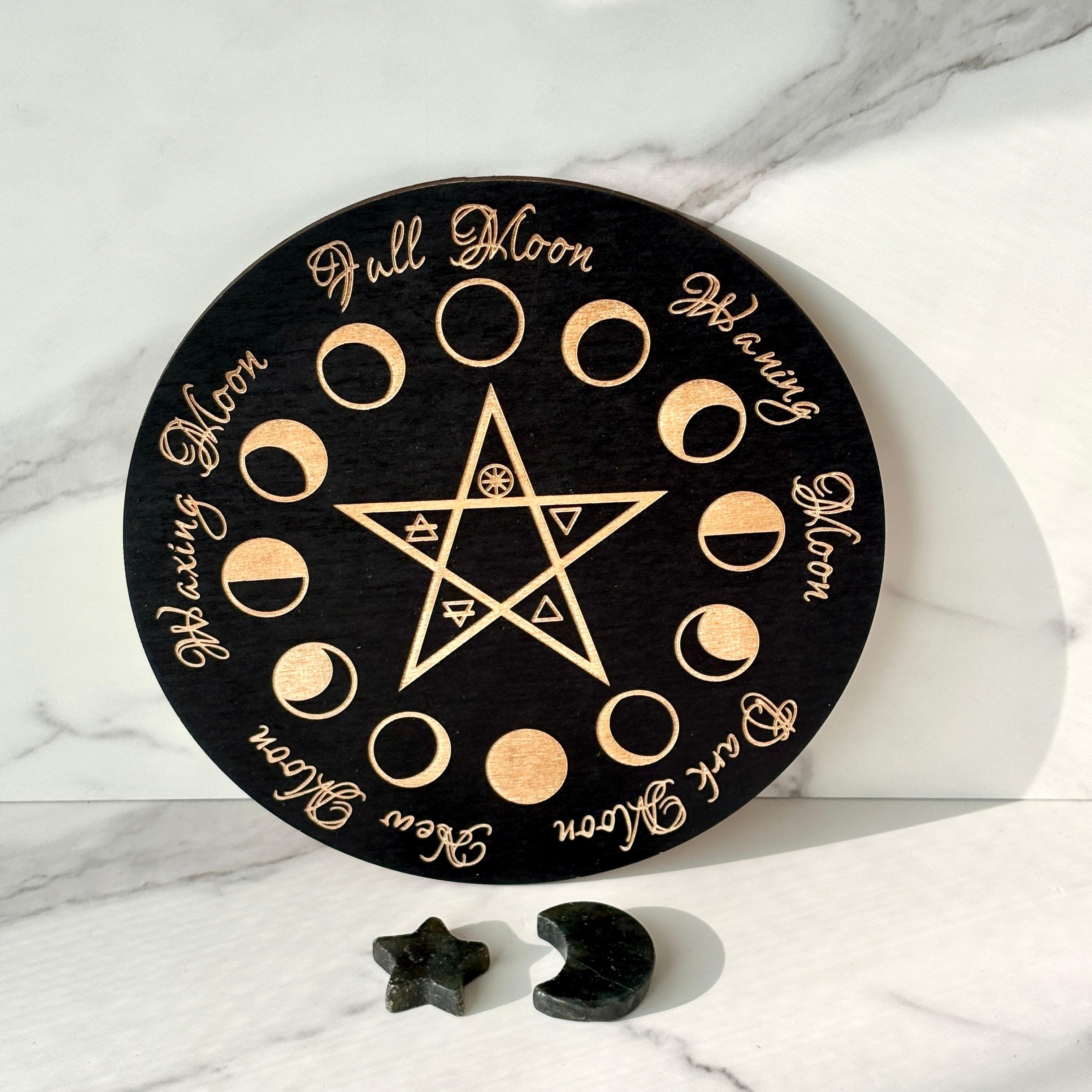 月相ペンデュラムボード|フルムーンと新月のサイクル|ダウジング・占い用|ラブラドライト月と星付き