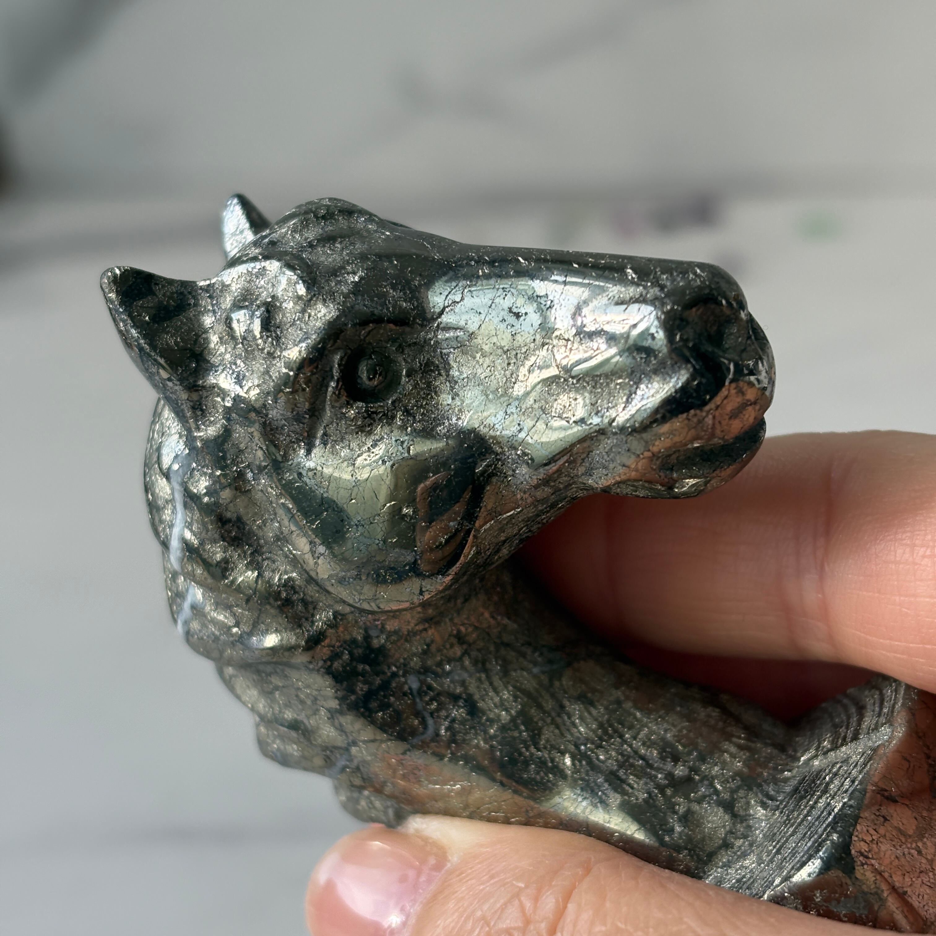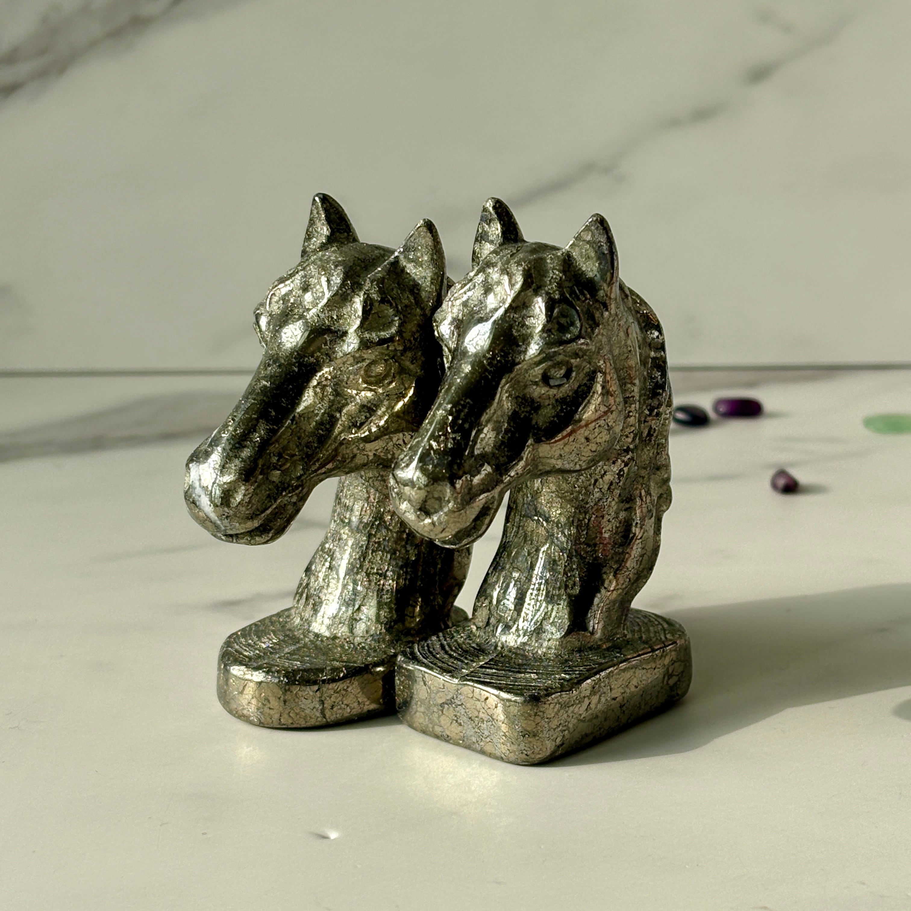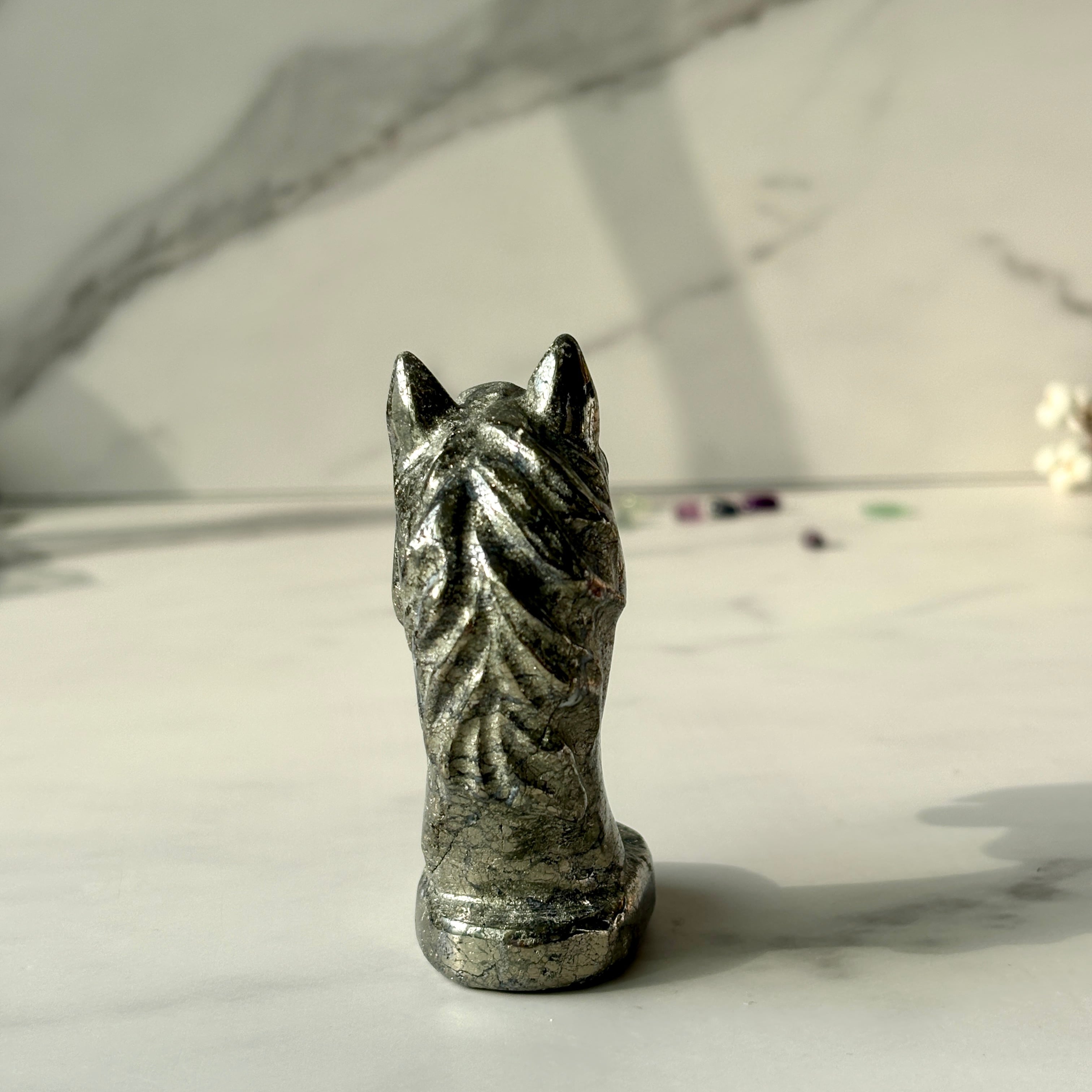 パイライト 馬 カービング 天然石置物|行動力・前進を象徴する一点も