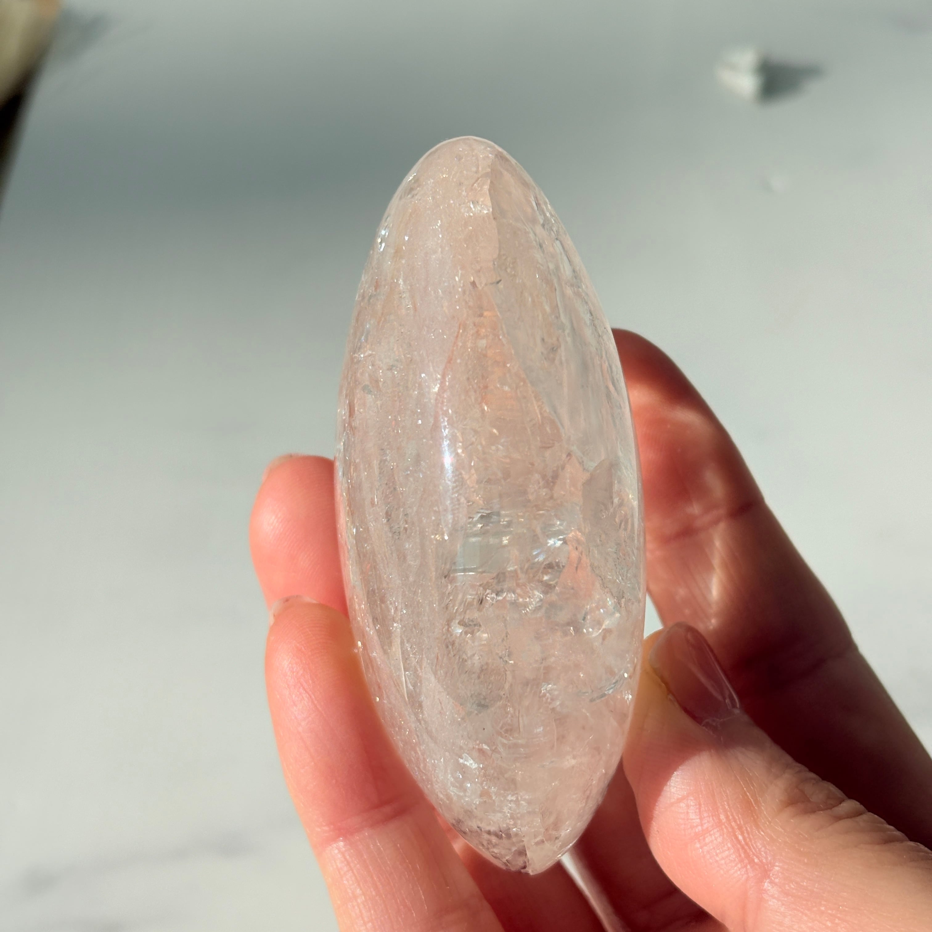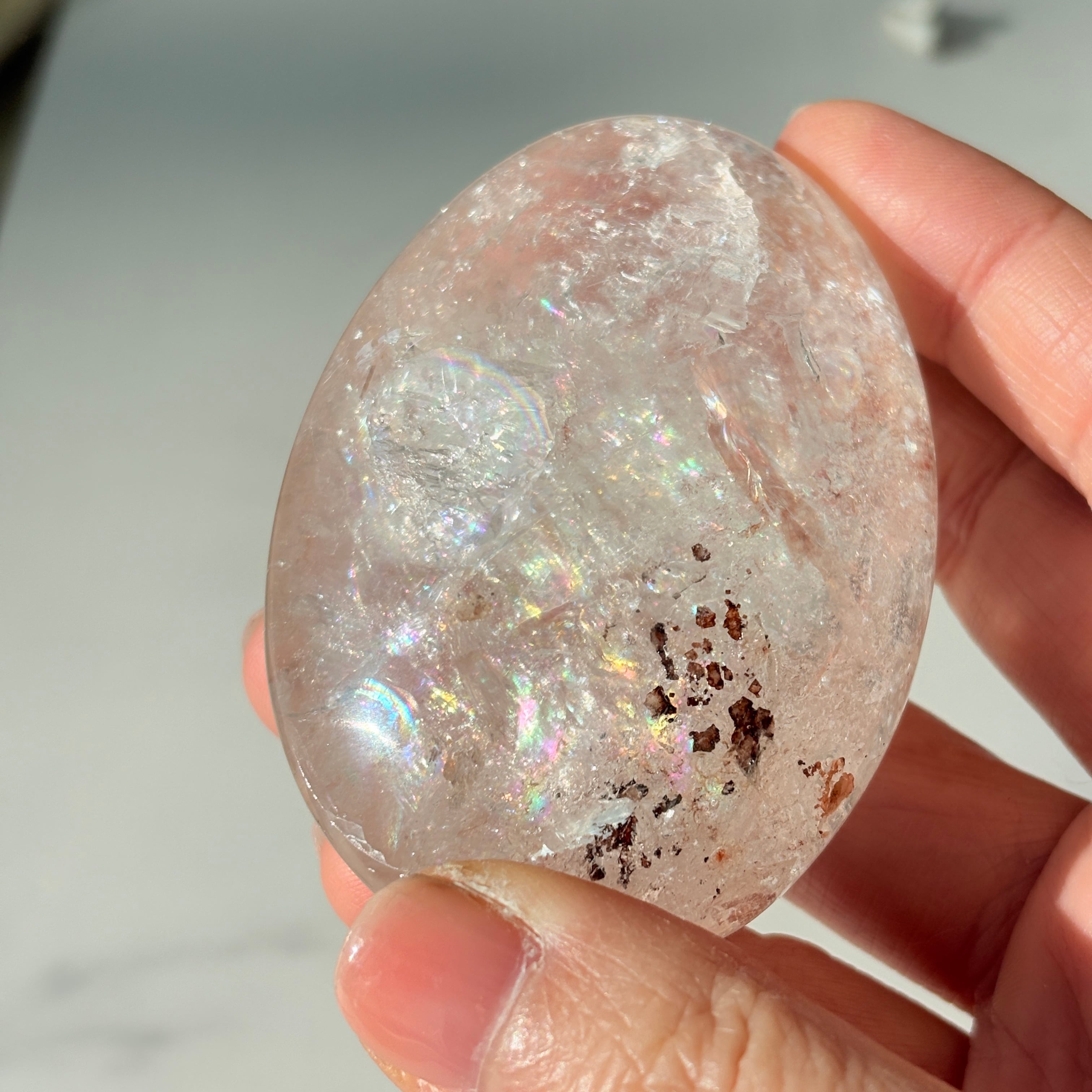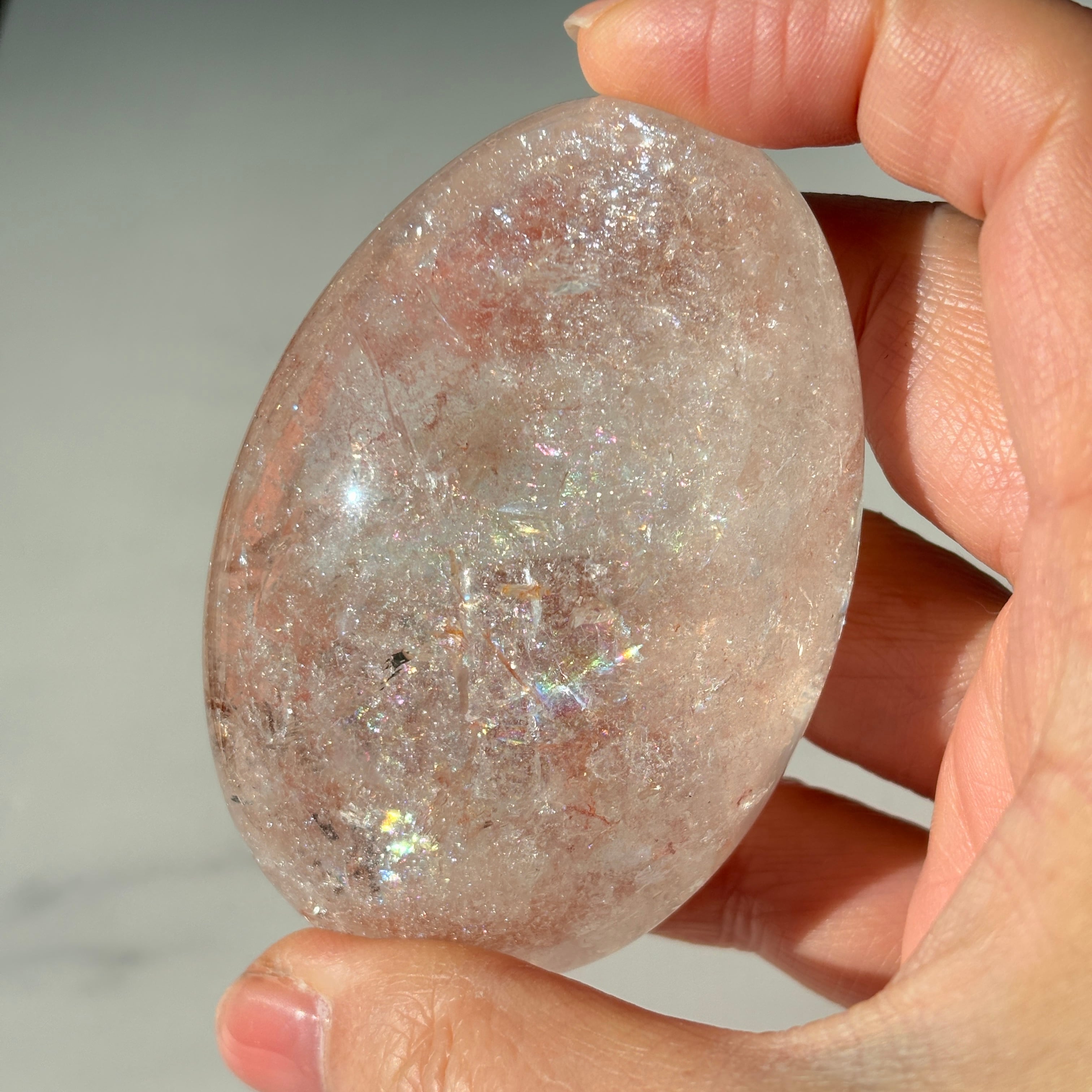 ピンククォーツ パームストーン|虹がきらめく癒しの天然石|手のひらサイズ|一点もの