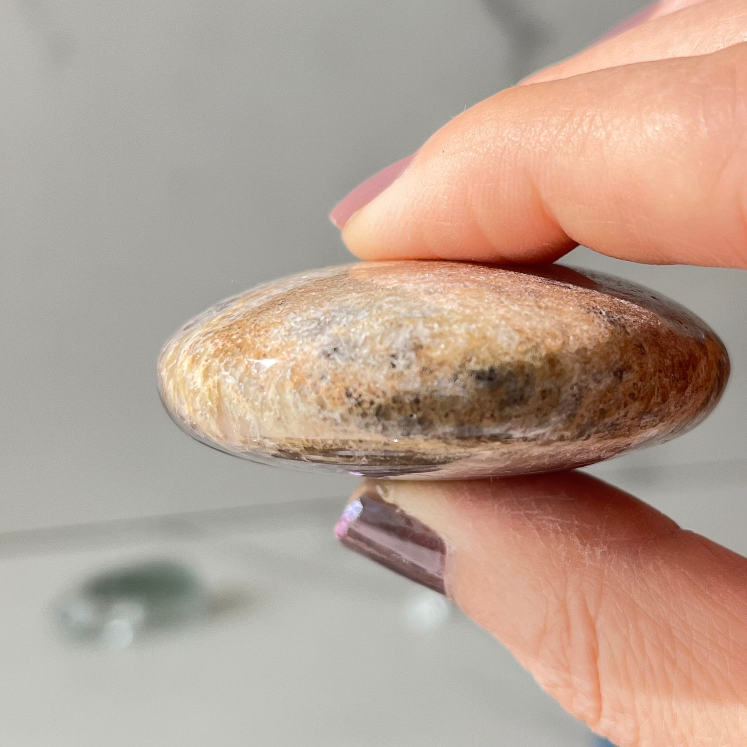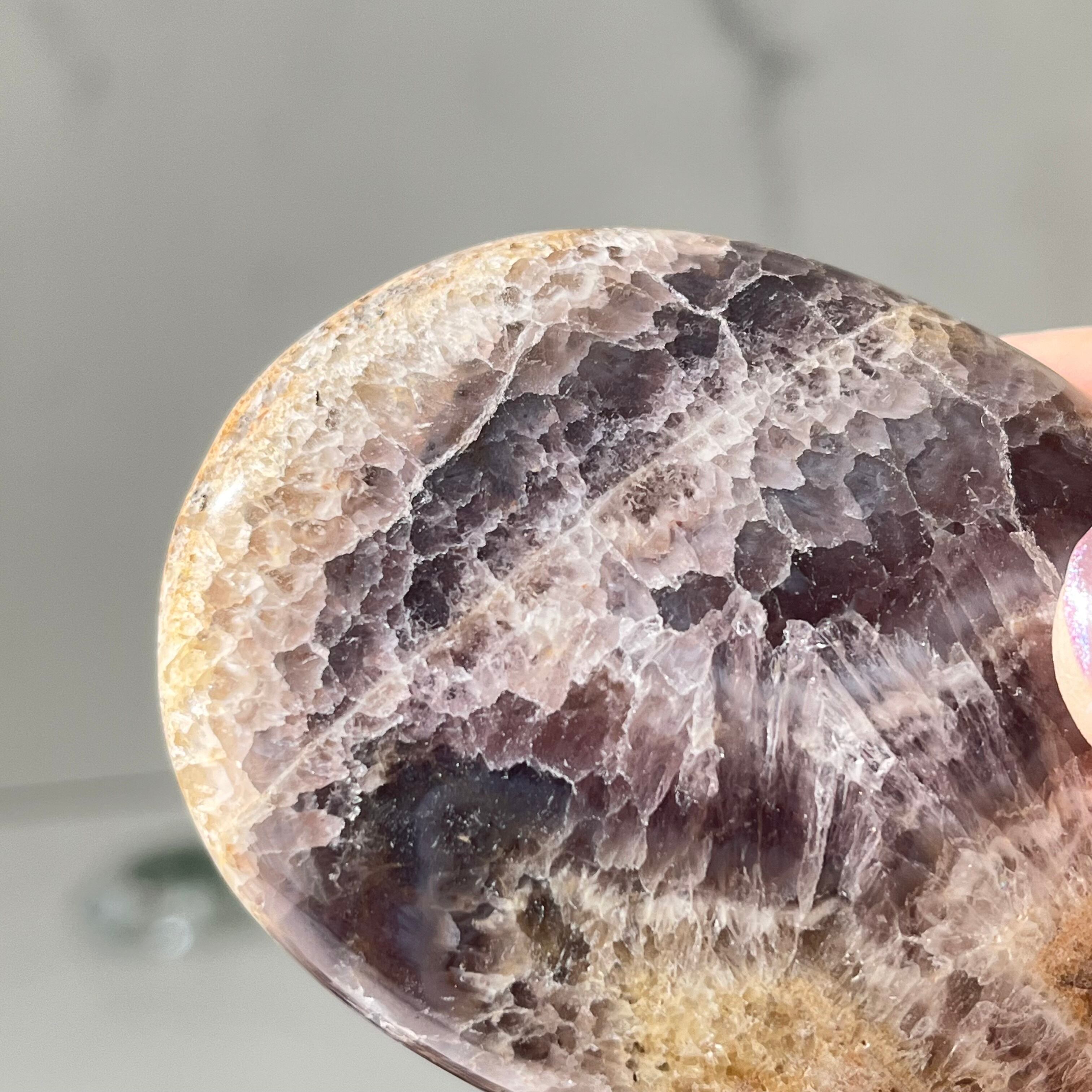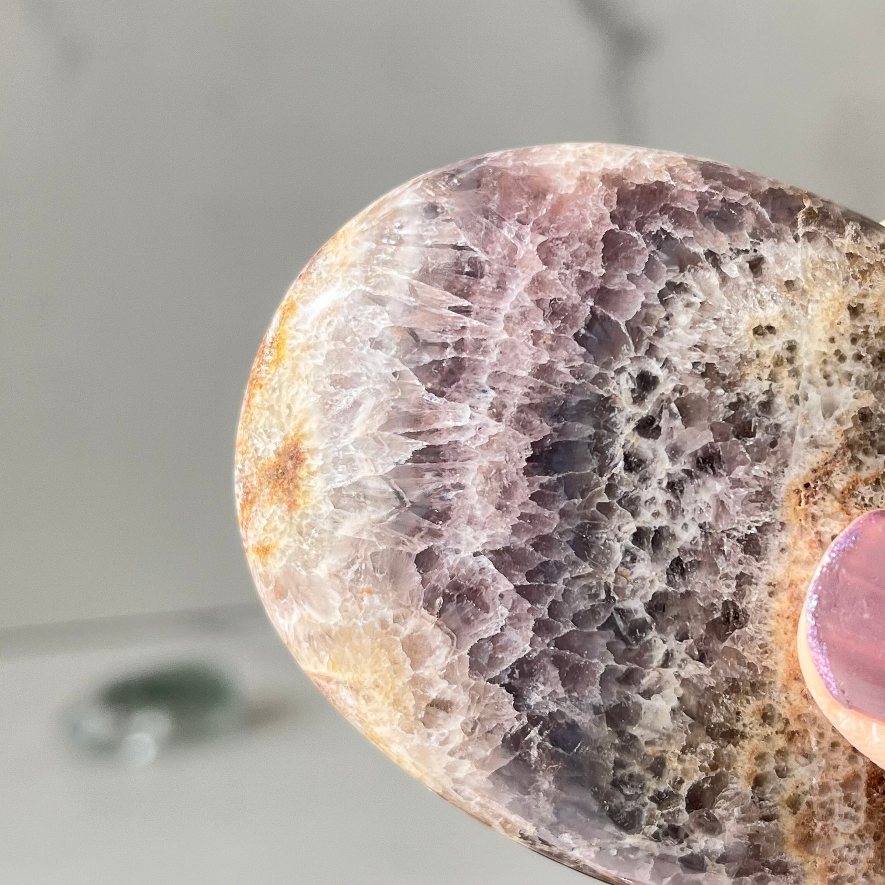 個性的な模様が美しいインドネシア産のアメジストのパームストーンです。