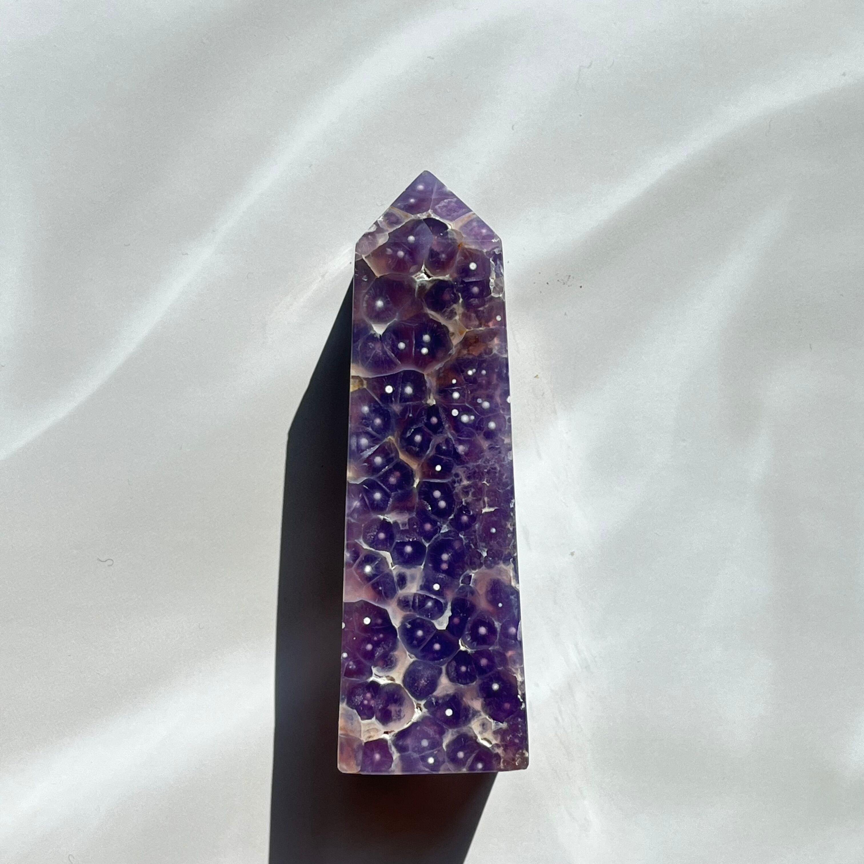 濃いめのパープルが落ち着いた印象のグレープアゲートのタワーです。