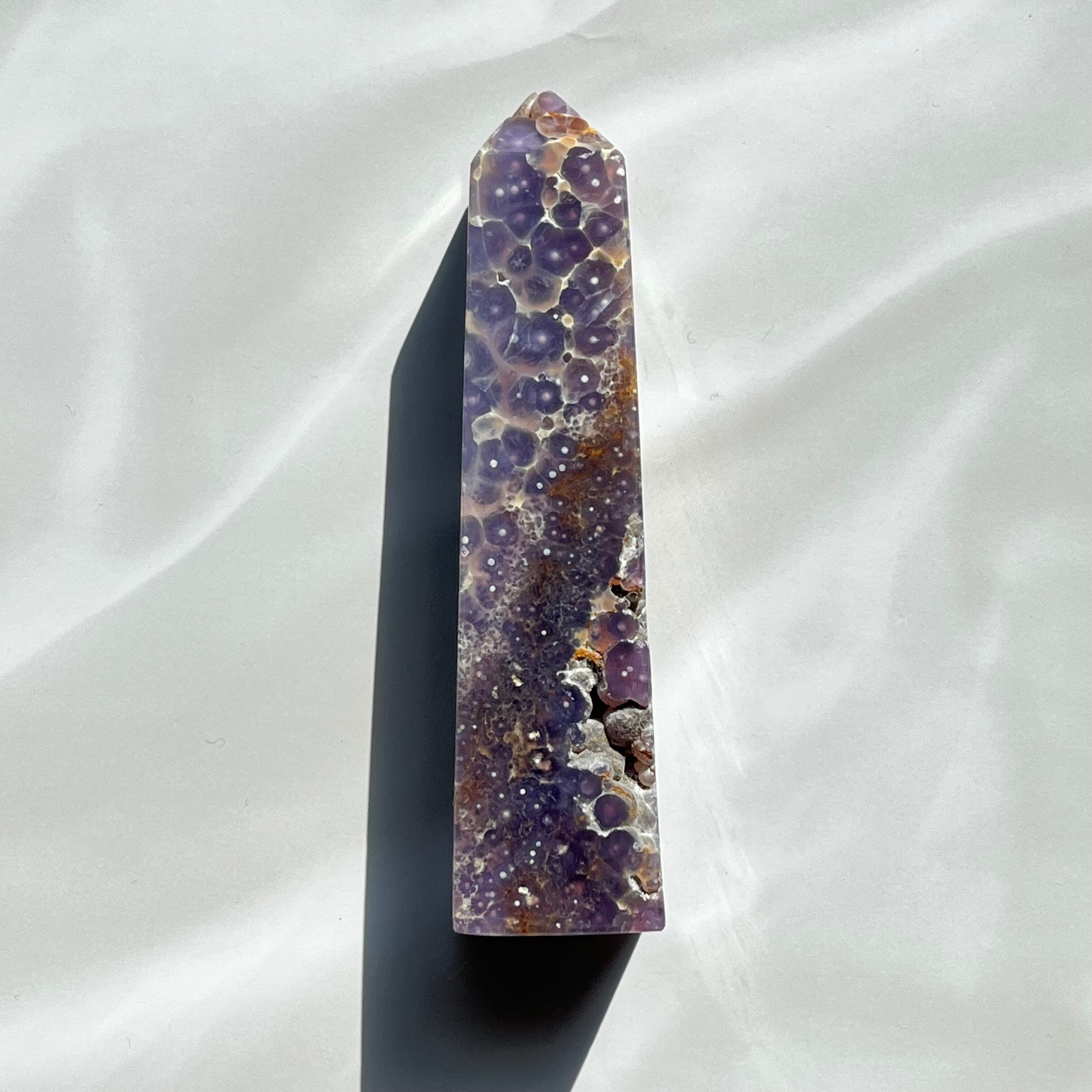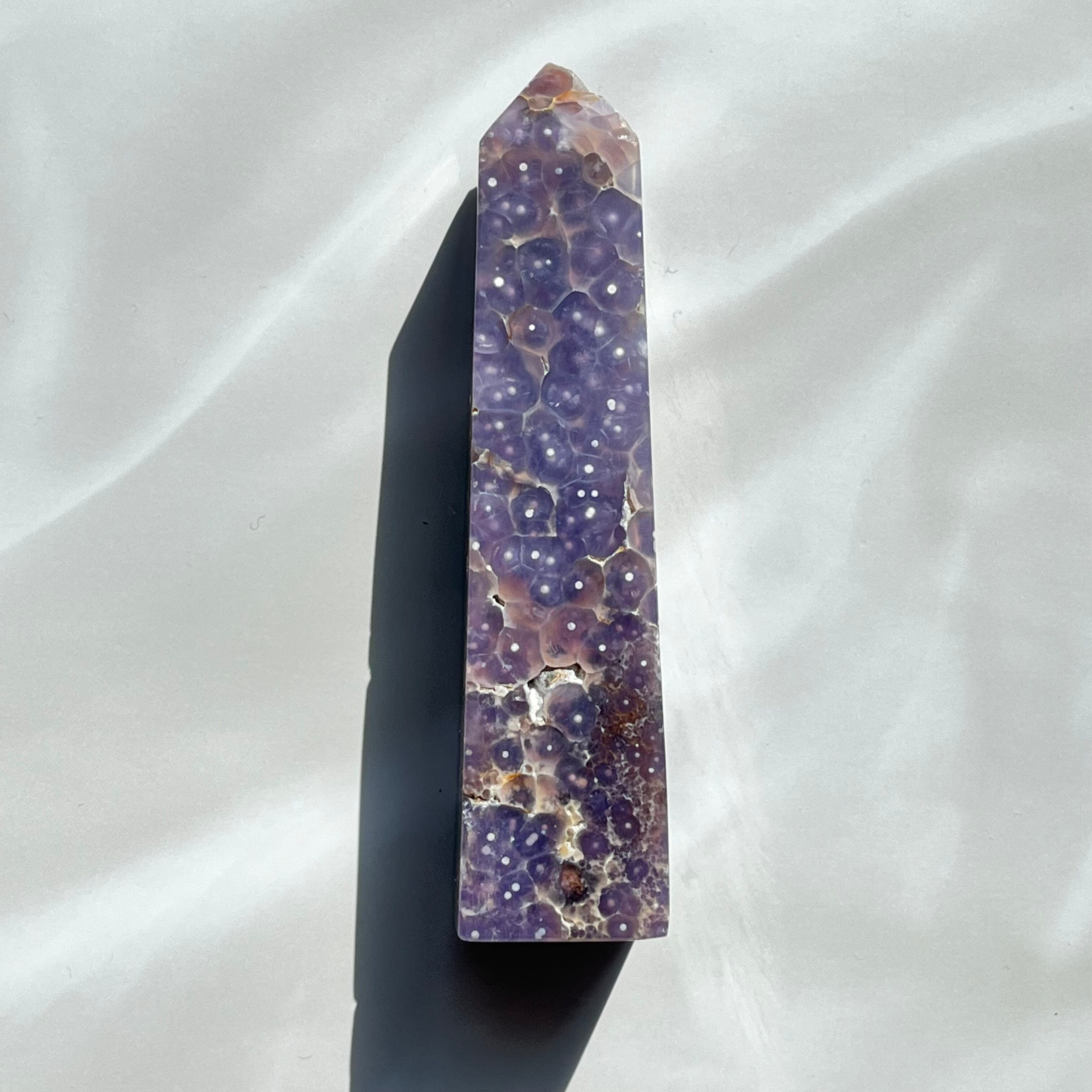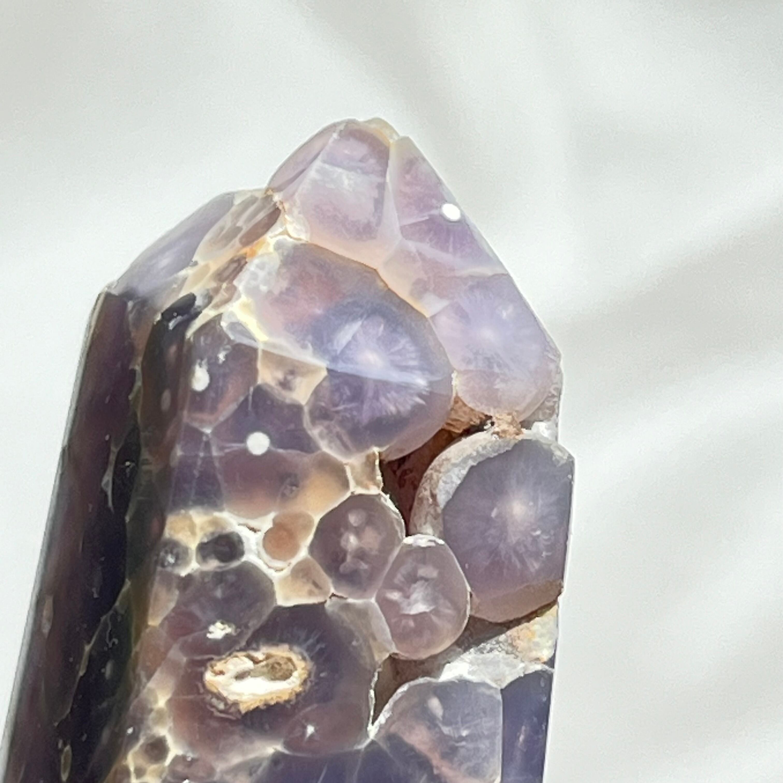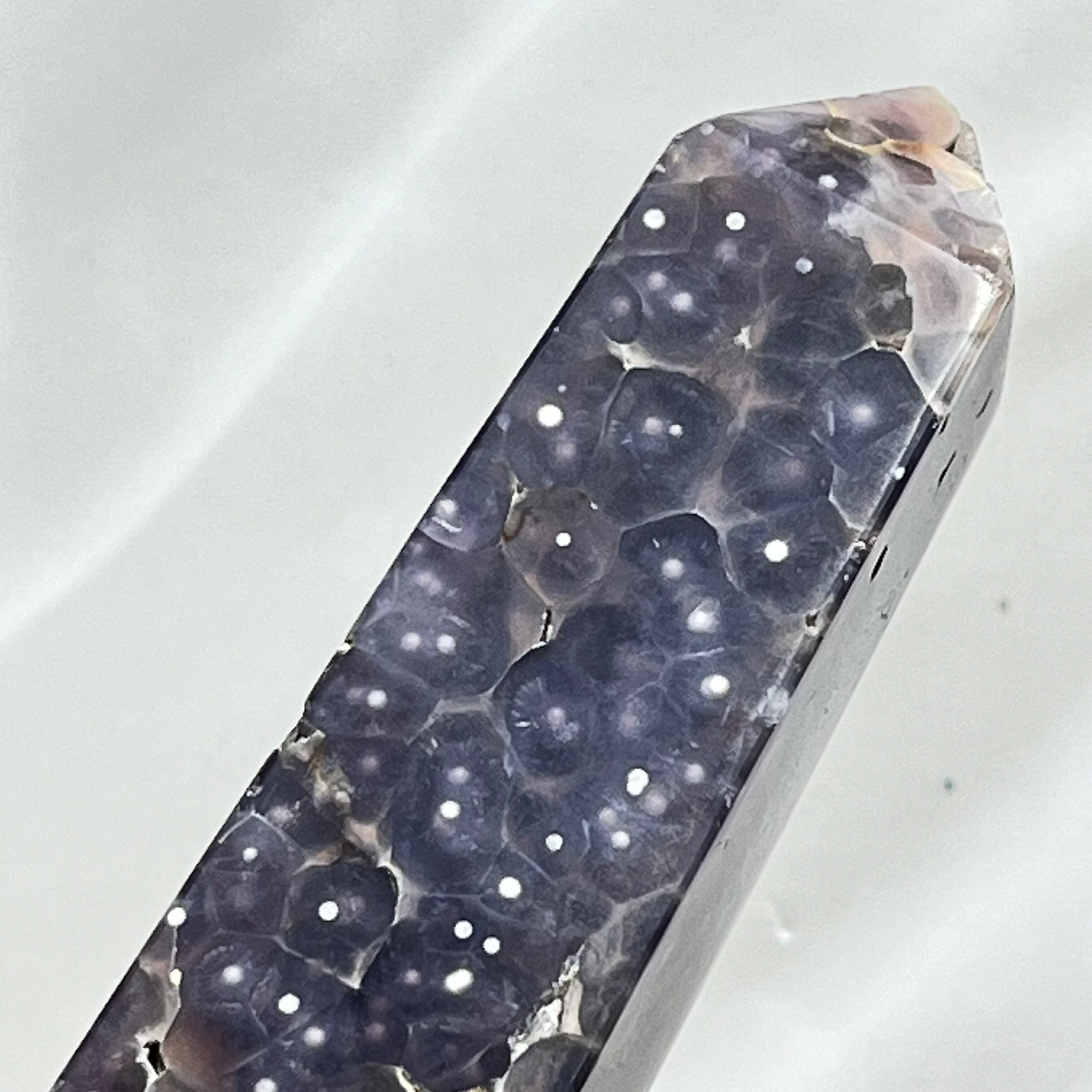 濃いめのパープルが落ち着いた印象のグレープアゲートのタワーです。グレープのような粒々も見られます。
