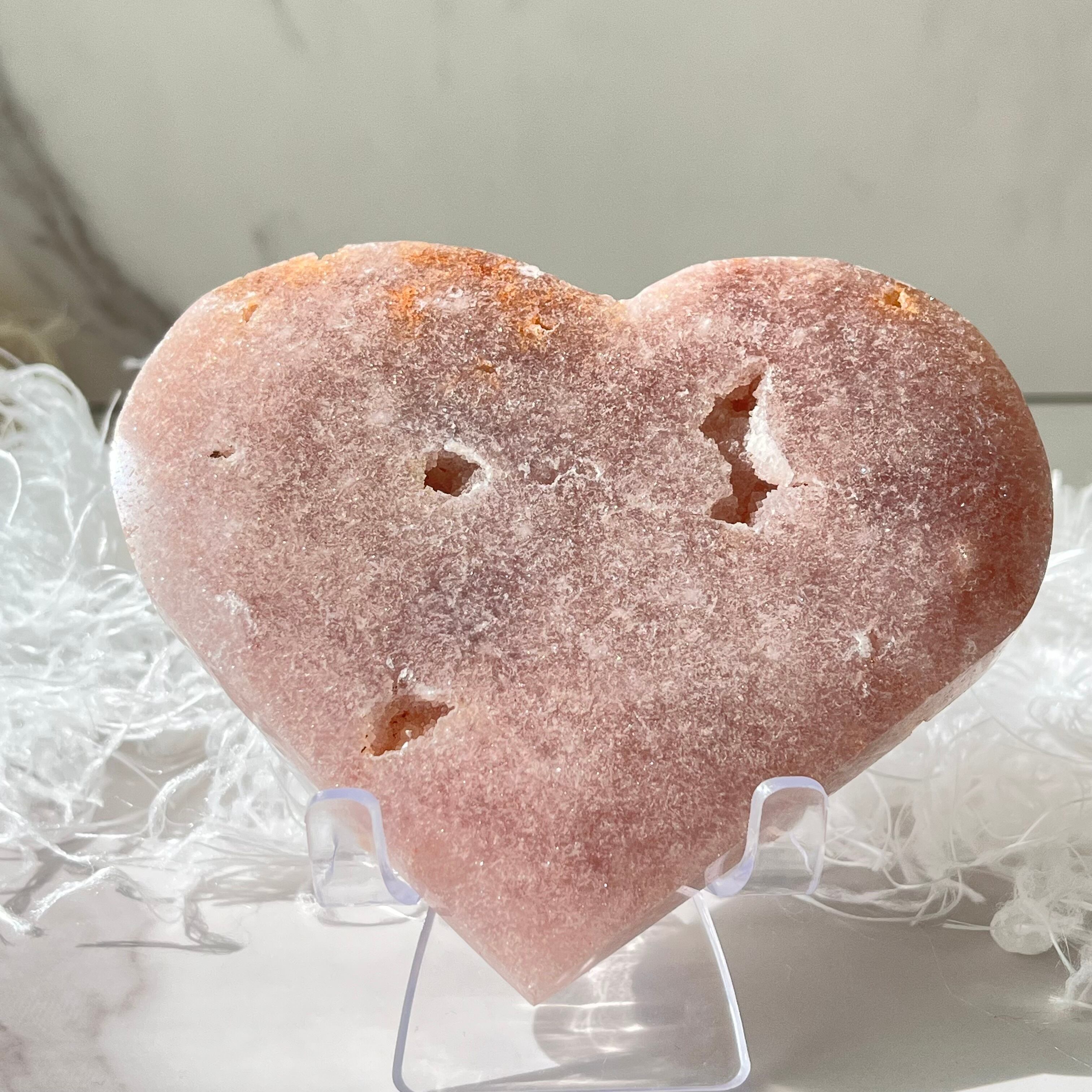 お色味の落ち着いたピンクアメジストのハートです。